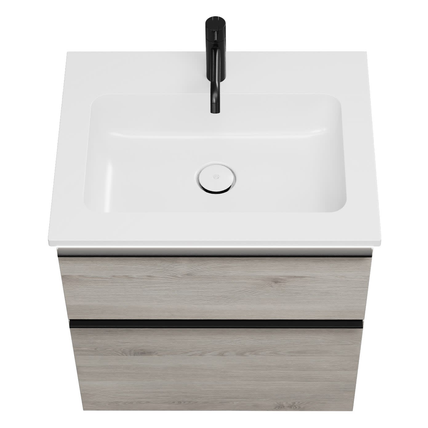 burgbad Eqio Waschtischkombination mit Mineralguss-Waschtisch und LED-Beleuchtung, 62 cm, mit Griffleiste G0252