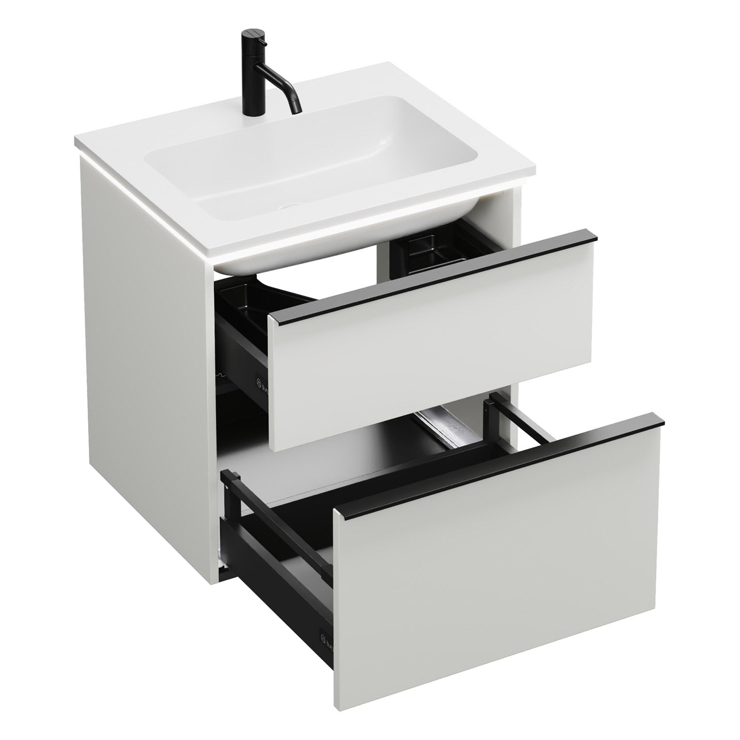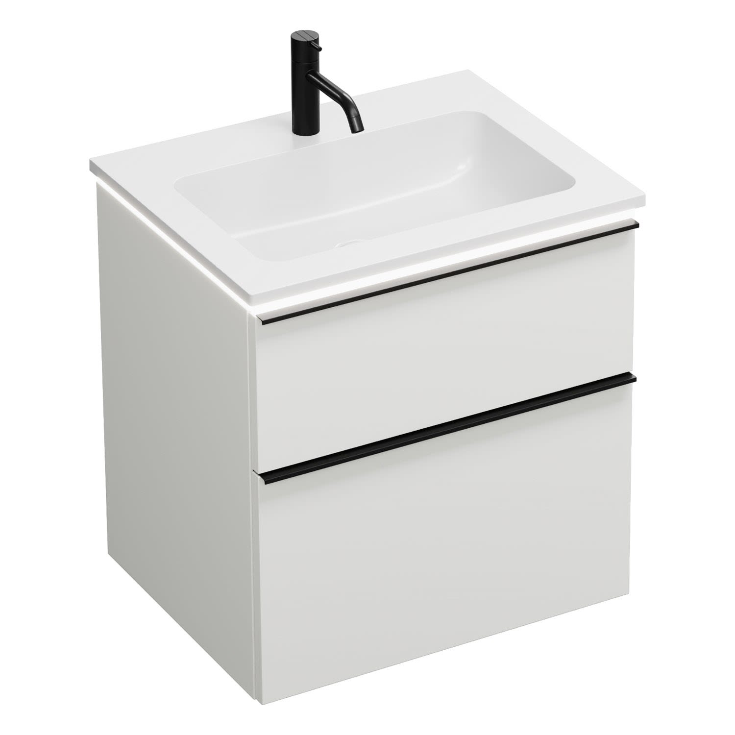 burgbad Eqio Waschtischkombination mit Mineralguss-Waschtisch und LED-Beleuchtung, 62 cm, mit Griffleiste G0252