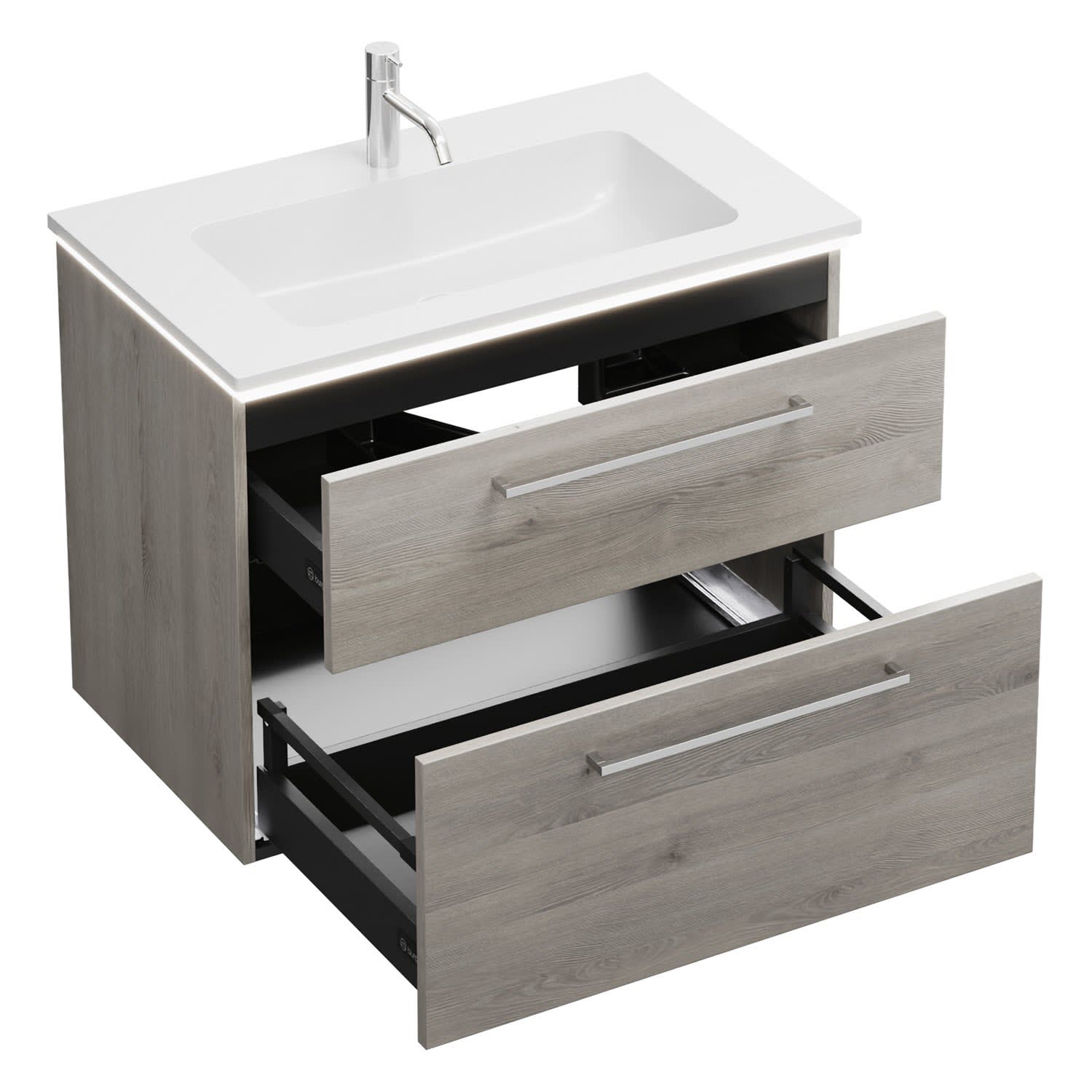 burgbad Eqio Waschtischkombination mit Mineralguss-Waschtisch und LED-Beleuchtung, 82 cm, mit Stangengriff P95