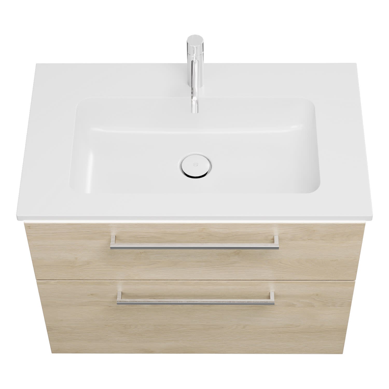 burgbad Eqio Waschtischkombination mit Mineralguss-Waschtisch und LED-Beleuchtung, 82 cm, mit Stangengriff P95