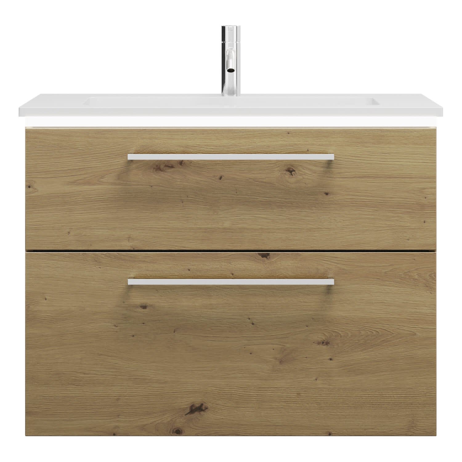 burgbad Eqio Waschtischkombination mit Mineralguss-Waschtisch und LED-Beleuchtung, 82 cm, mit Stangengriff P95