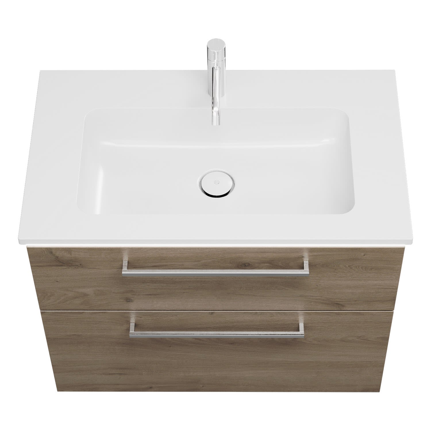 - 1 Schublade oben, 35 cm tief, mit Siphonausschnitt und Inneneinteilung