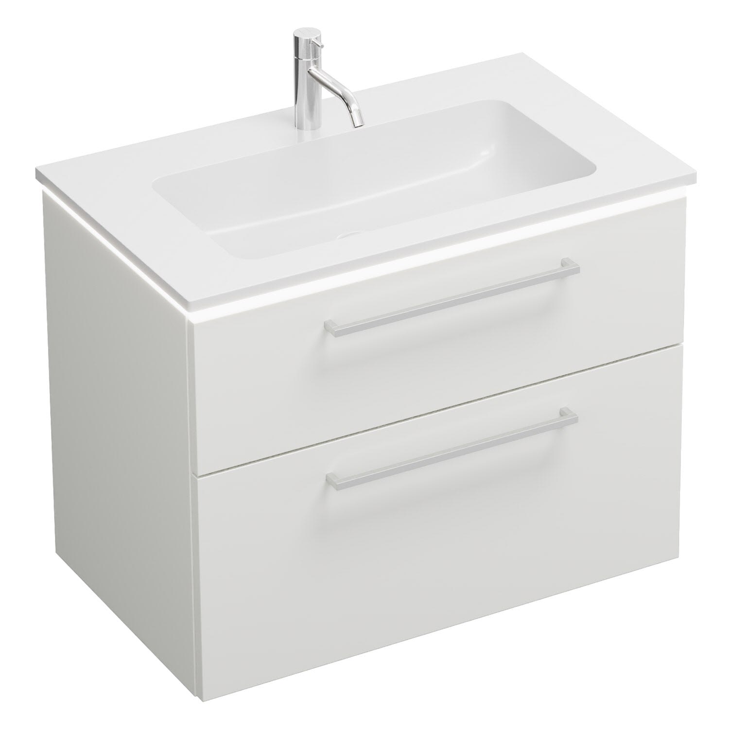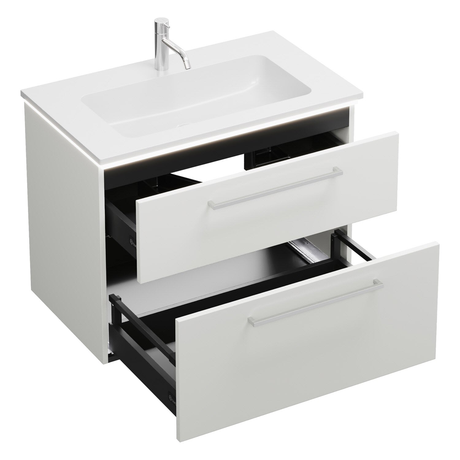burgbad Eqio Waschtischkombination mit Mineralguss-Waschtisch und LED-Beleuchtung, 82 cm, mit Stangengriff P95