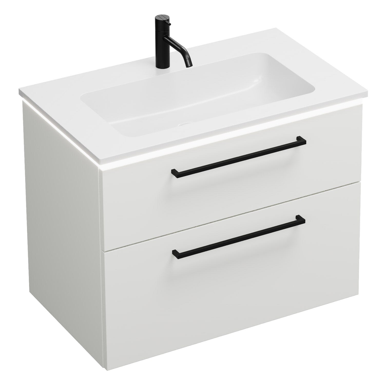 burgbad Eqio Waschtischkombination mit Mineralguss-Waschtisch und LED-Beleuchtung, 82 cm, mit Stangengriff G0234