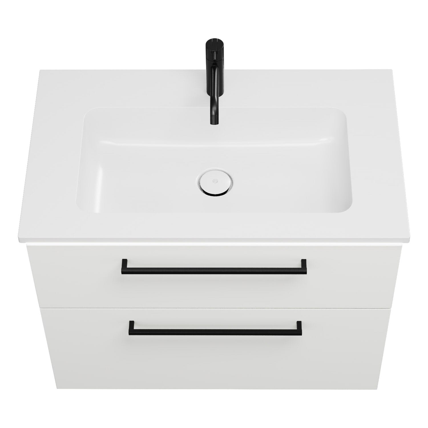 - 1 Schublade oben, 35 cm tief, mit Siphonausschnitt und Inneneinteilung
