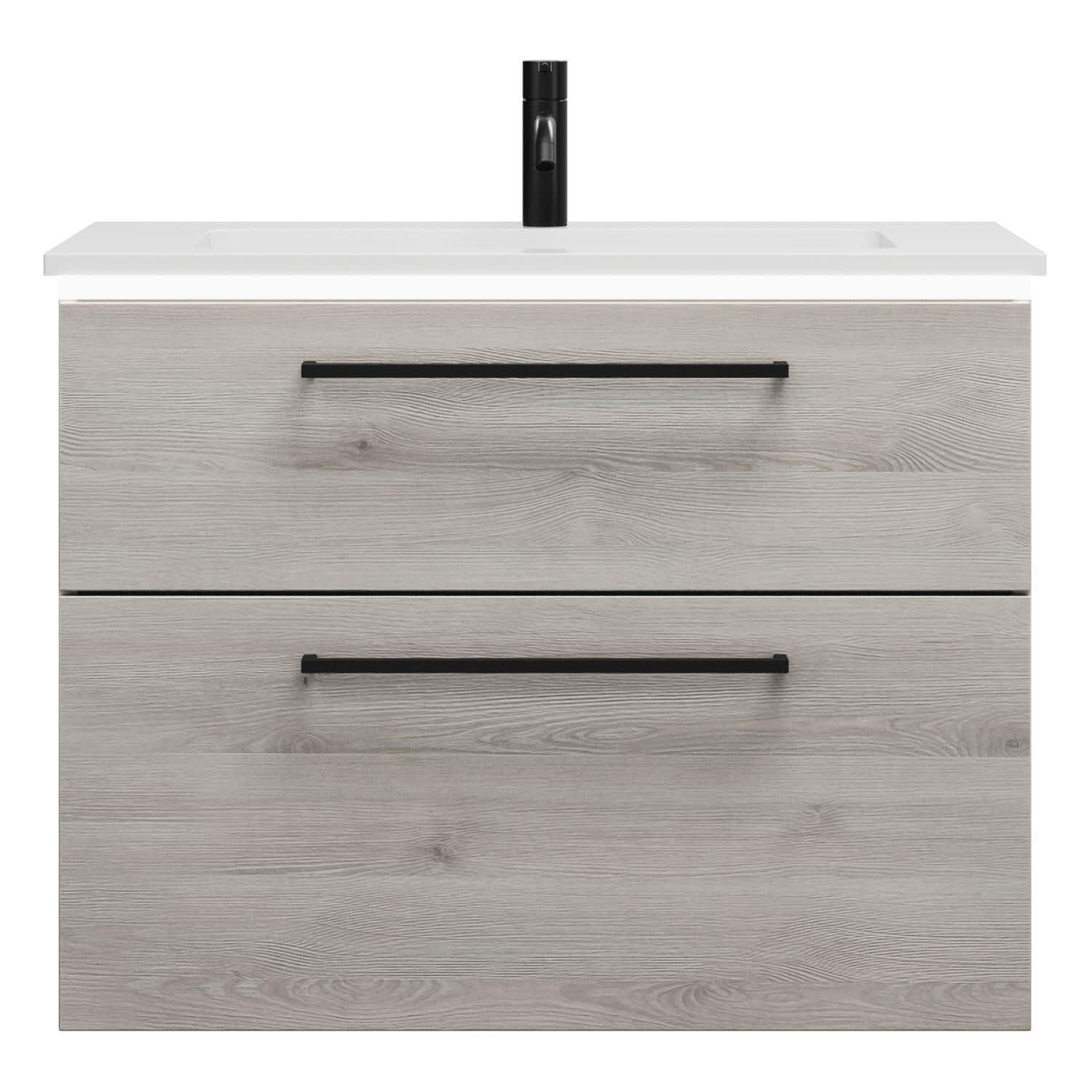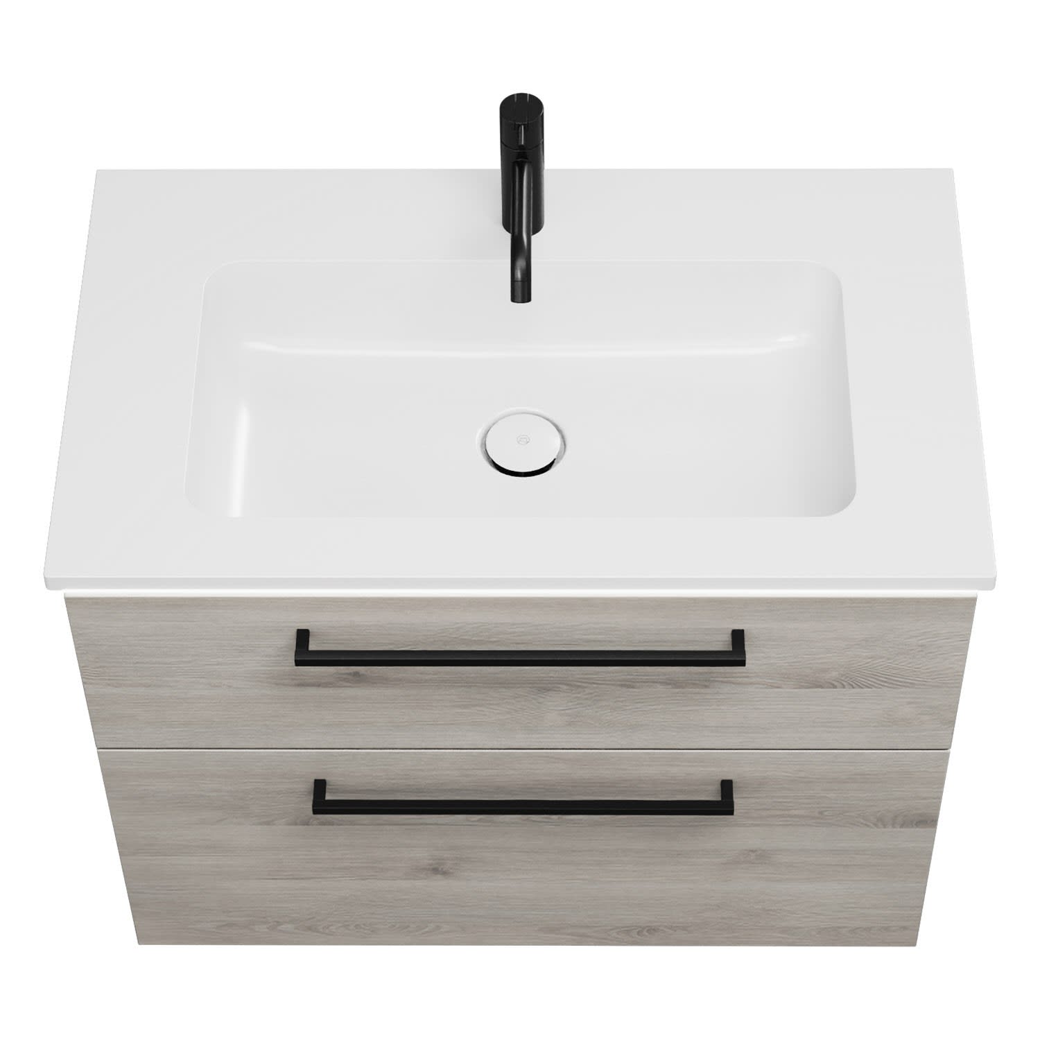 burgbad Eqio Waschtischkombination mit Mineralguss-Waschtisch und LED-Beleuchtung, 82 cm, mit Stangengriff G0234