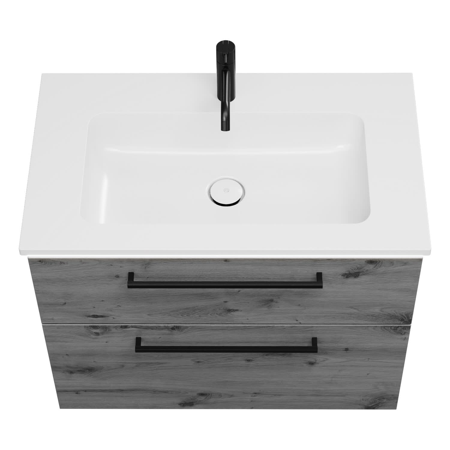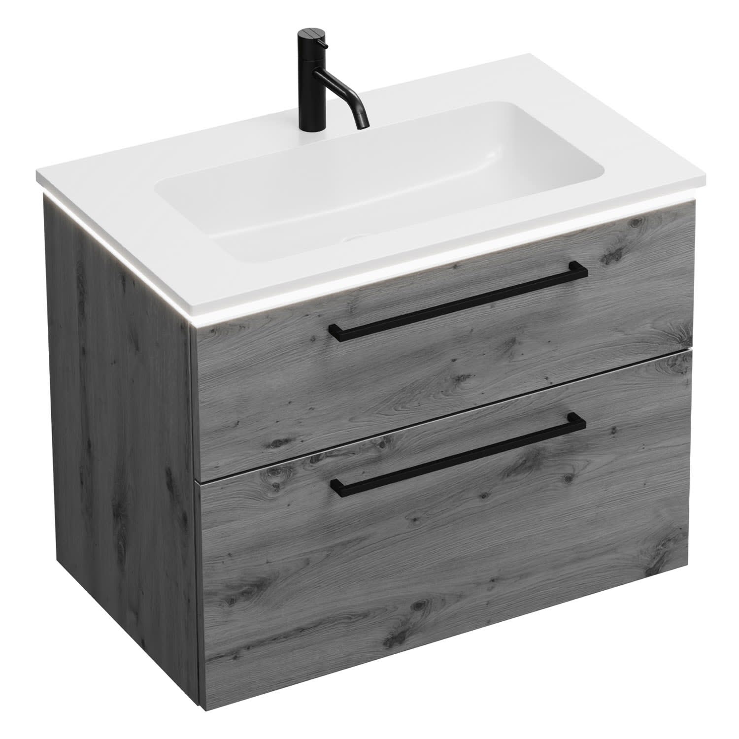 burgbad Eqio Waschtischkombination mit Mineralguss-Waschtisch und LED-Beleuchtung, 82 cm, mit Stangengriff G0234