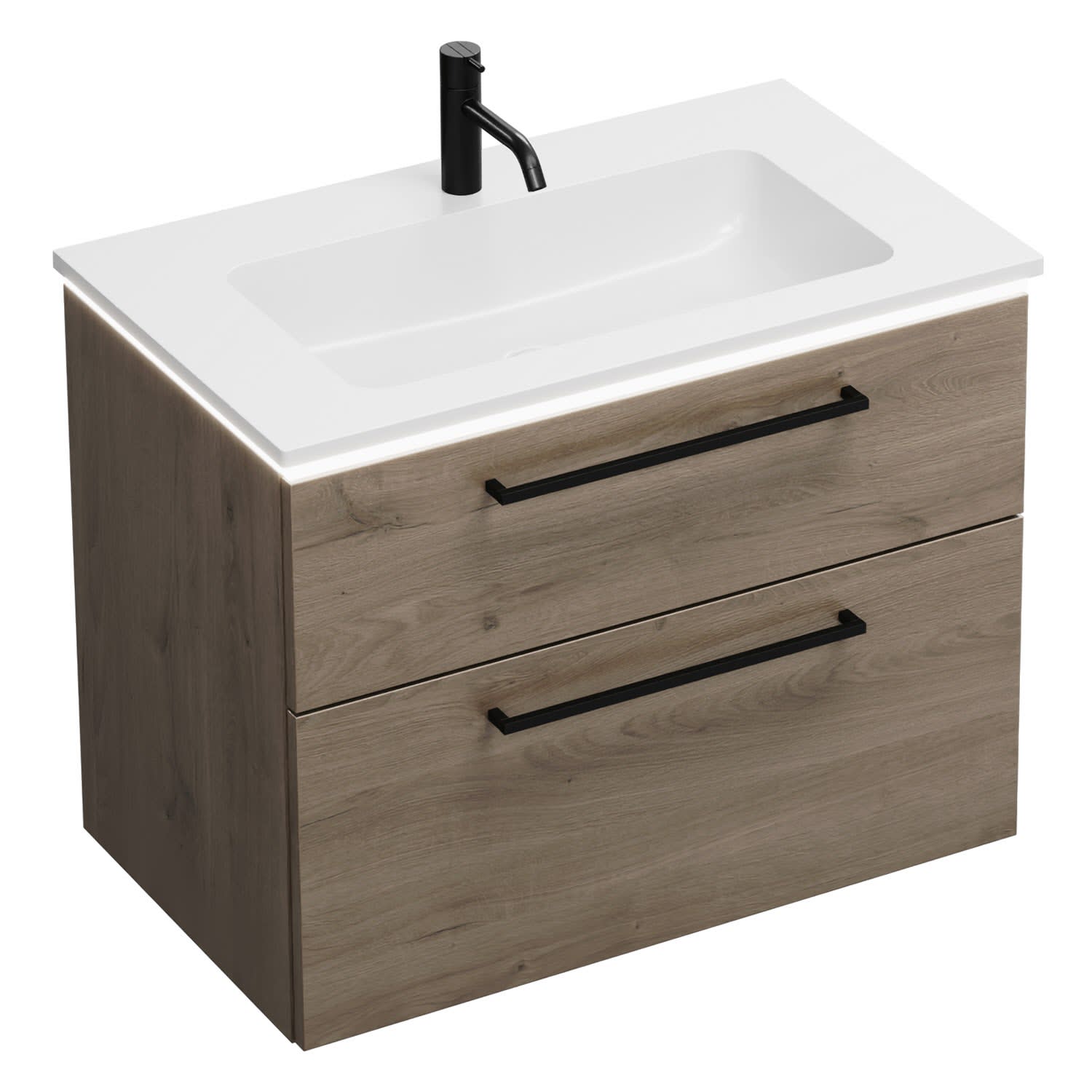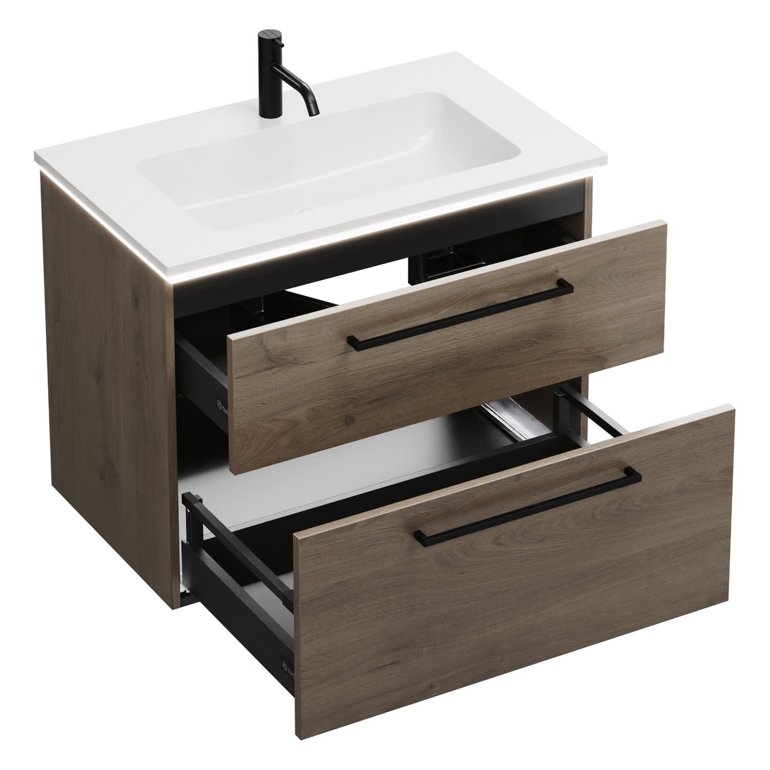 burgbad Eqio Waschtischkombination mit Mineralguss-Waschtisch und LED-Beleuchtung, 82 cm, mit Stangengriff G0234