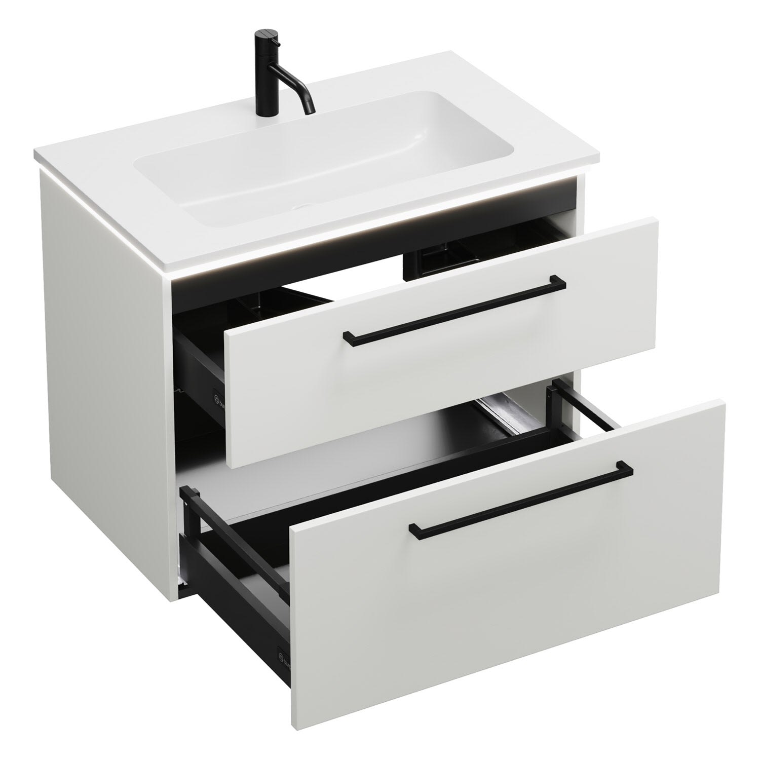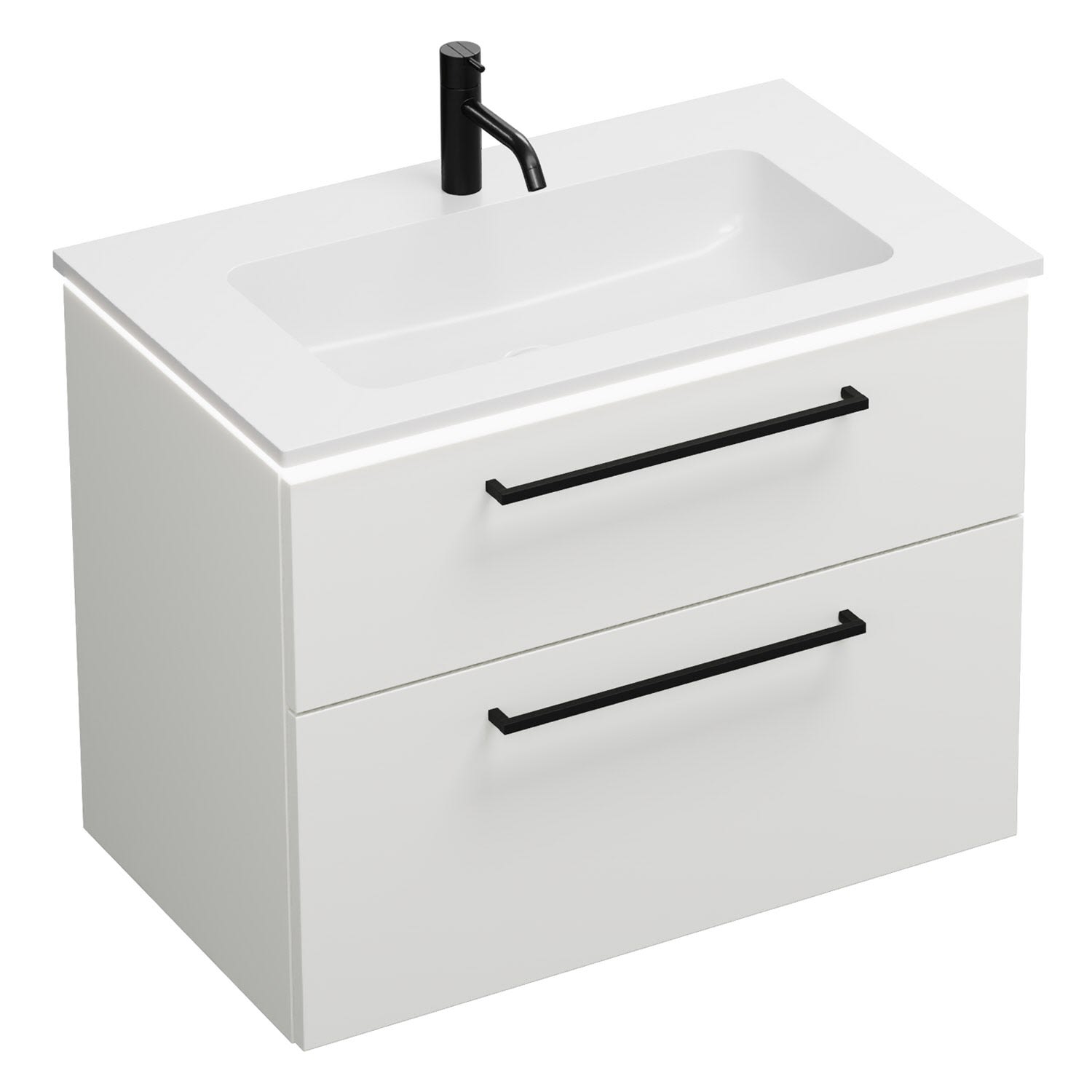 burgbad Eqio Waschtischkombination mit Mineralguss-Waschtisch und LED-Beleuchtung, 82 cm, mit Stangengriff G0234