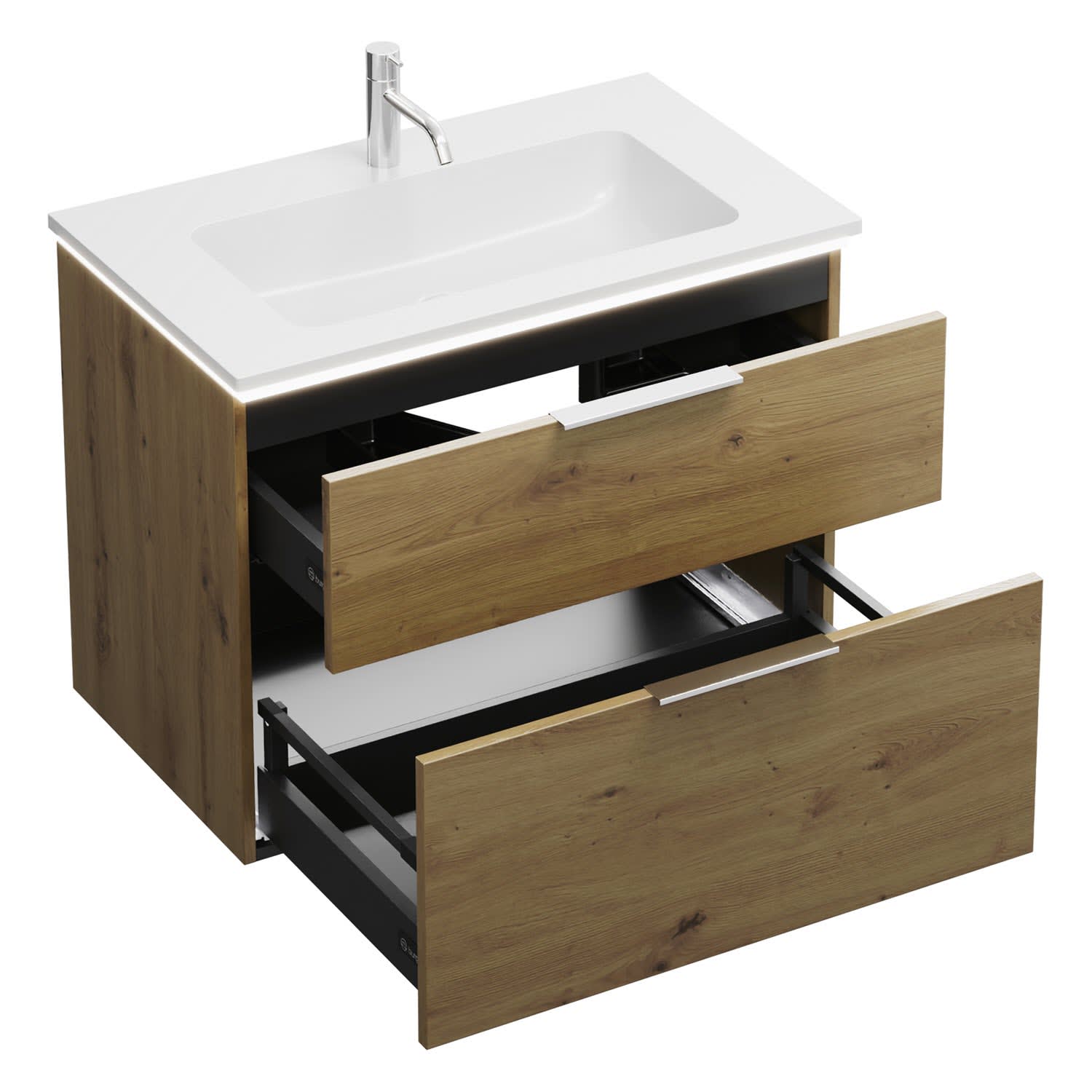 burgbad Eqio Waschtischkombination mit Mineralguss-Waschtisch und LED-Beleuchtung, 82 cm, mit Griff G0146