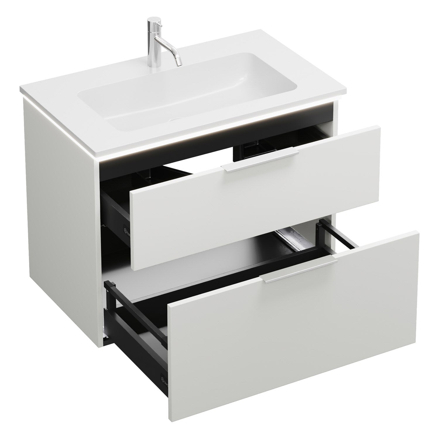 burgbad Eqio Waschtischkombination mit Mineralguss-Waschtisch und LED-Beleuchtung, 82 cm, mit Griff G0146
