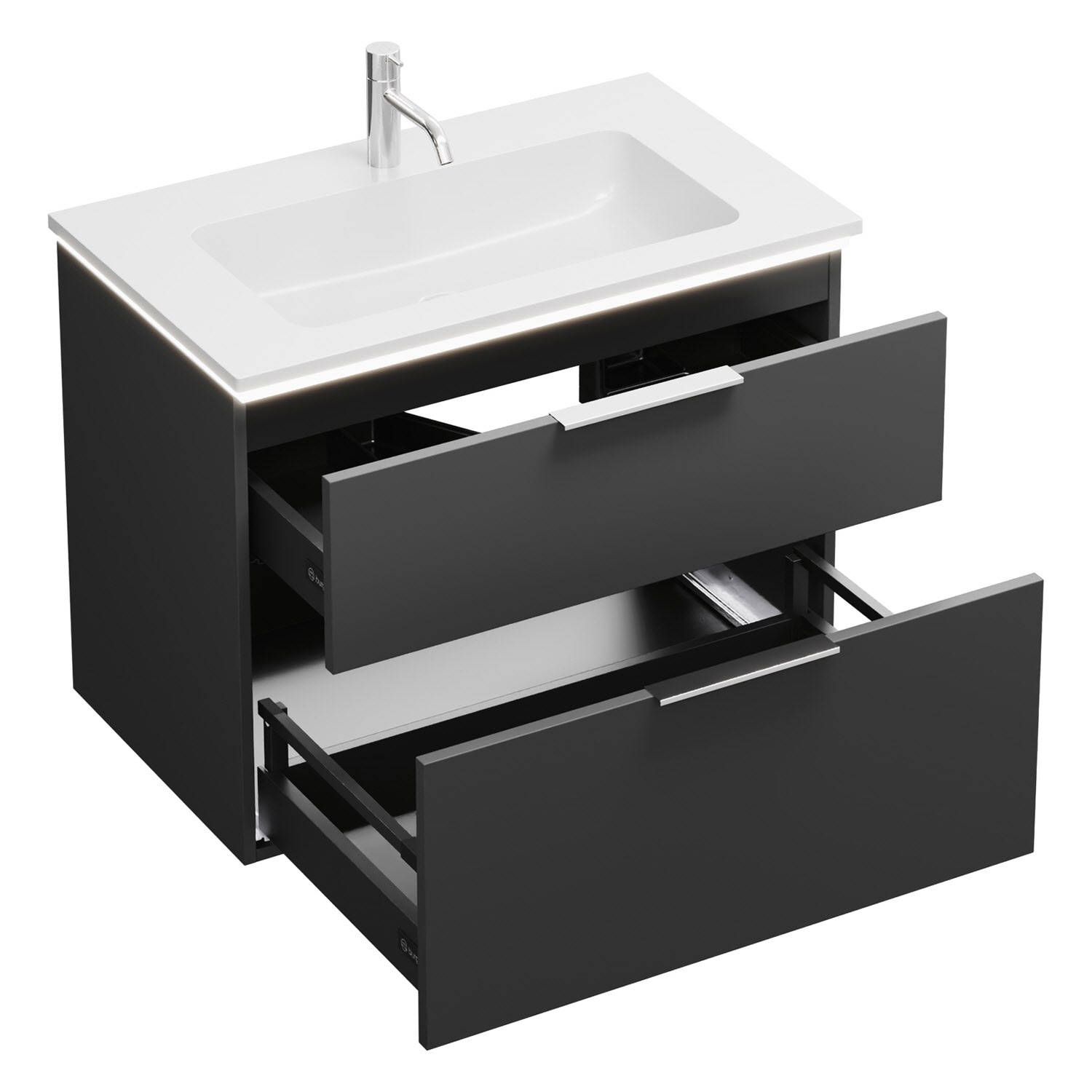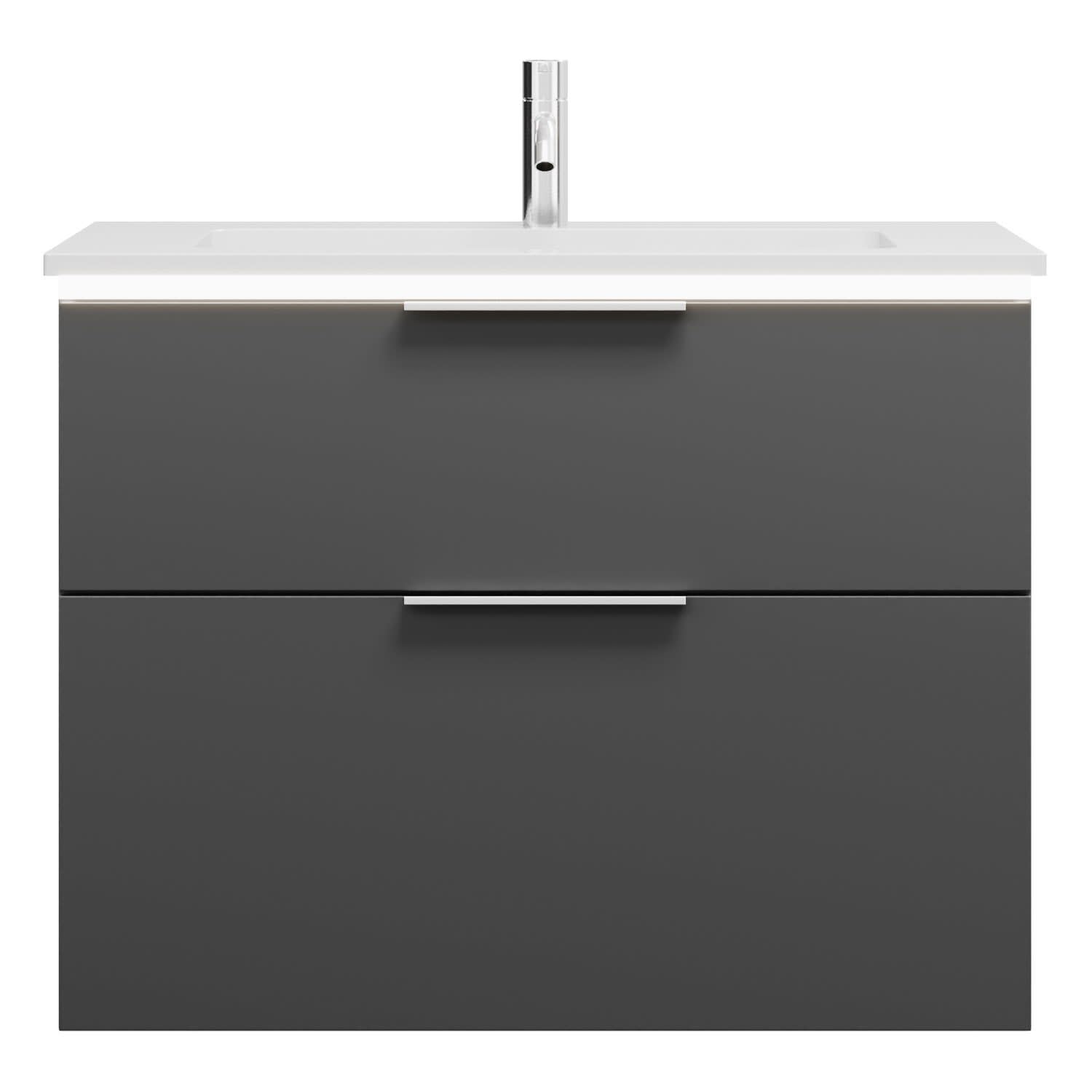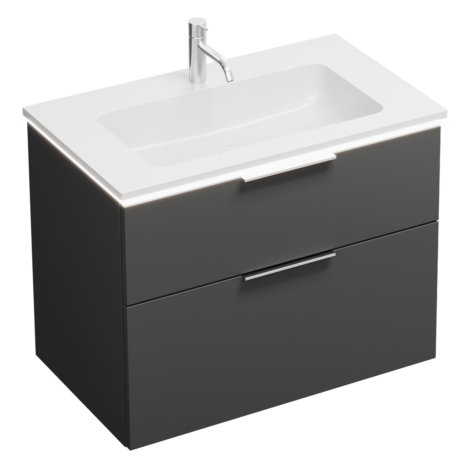 burgbad Eqio Waschtischkombination mit Mineralguss-Waschtisch und LED-Beleuchtung, 82 cm, mit Griff G0146