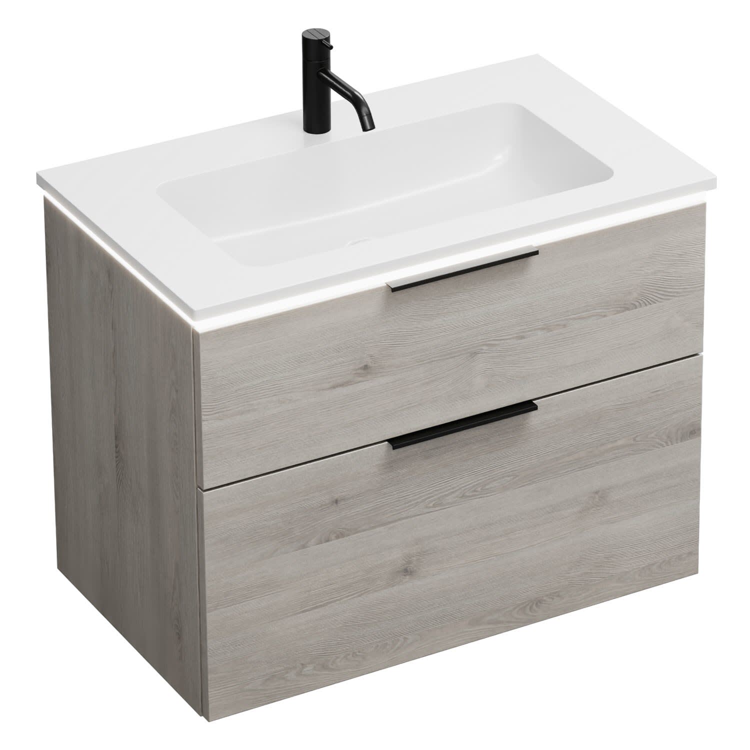 burgbad Eqio Waschtischkombination mit Mineralguss-Waschtisch und LED-Beleuchtung, 82 cm, mit Griff G0200