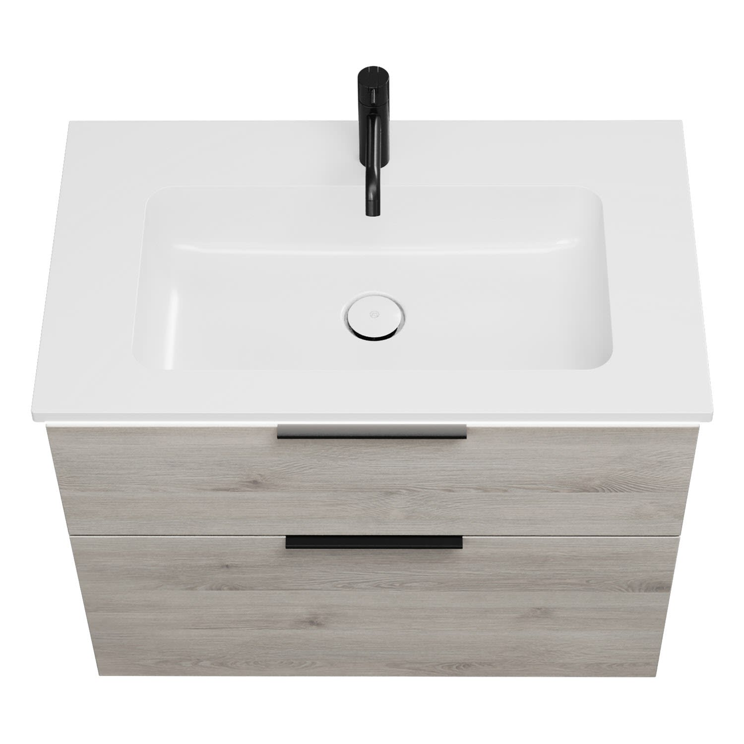 - 1 Schublade oben, 35 cm tief, mit Siphonausschnitt und Inneneinteilung