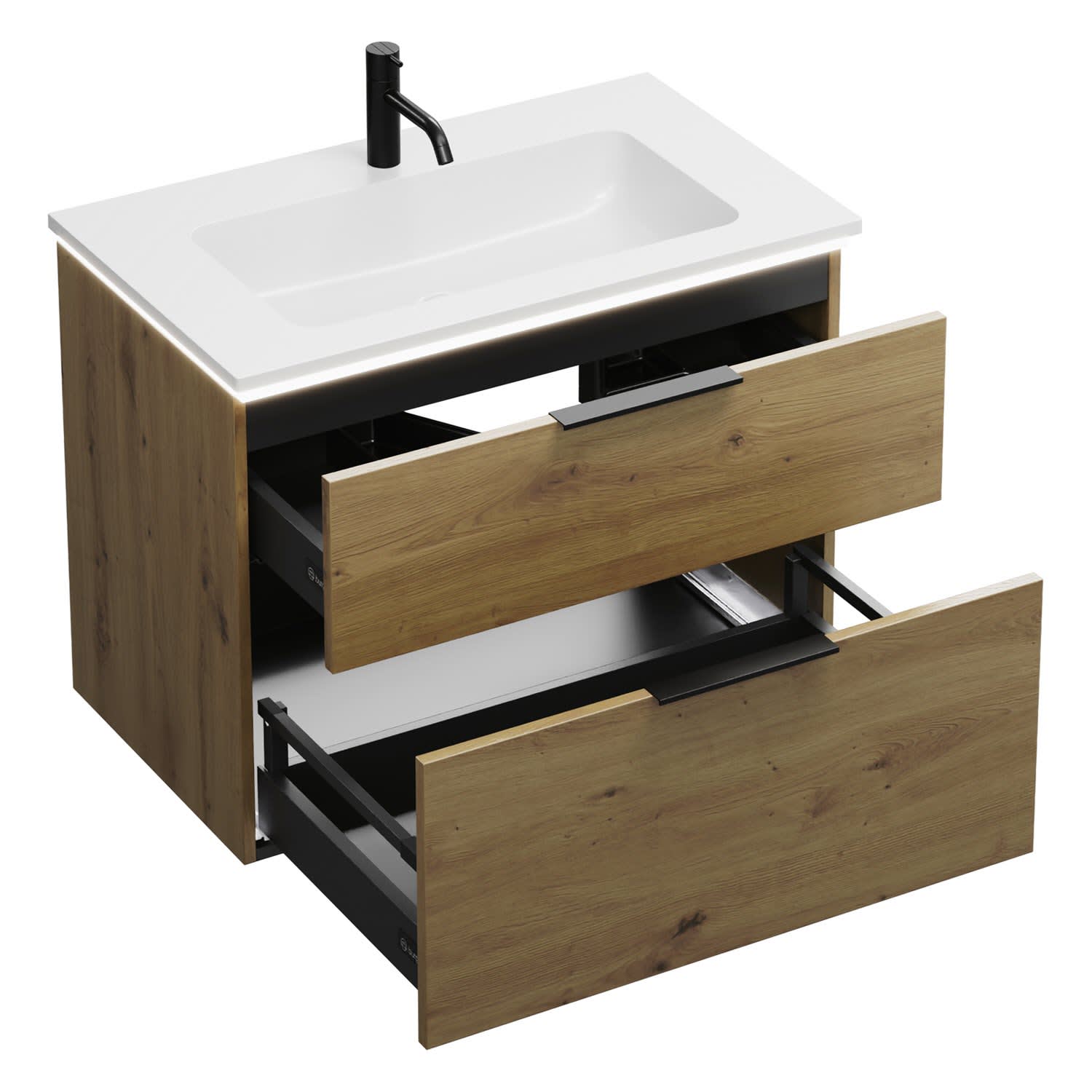 burgbad Eqio Waschtischkombination mit Mineralguss-Waschtisch und LED-Beleuchtung, 82 cm, mit Griff G0200