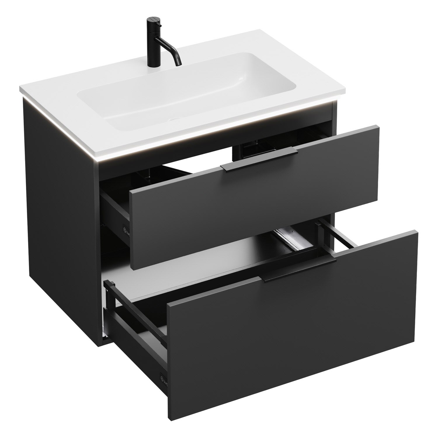 burgbad Eqio Waschtischkombination mit Mineralguss-Waschtisch und LED-Beleuchtung, 82 cm, mit Griff G0200