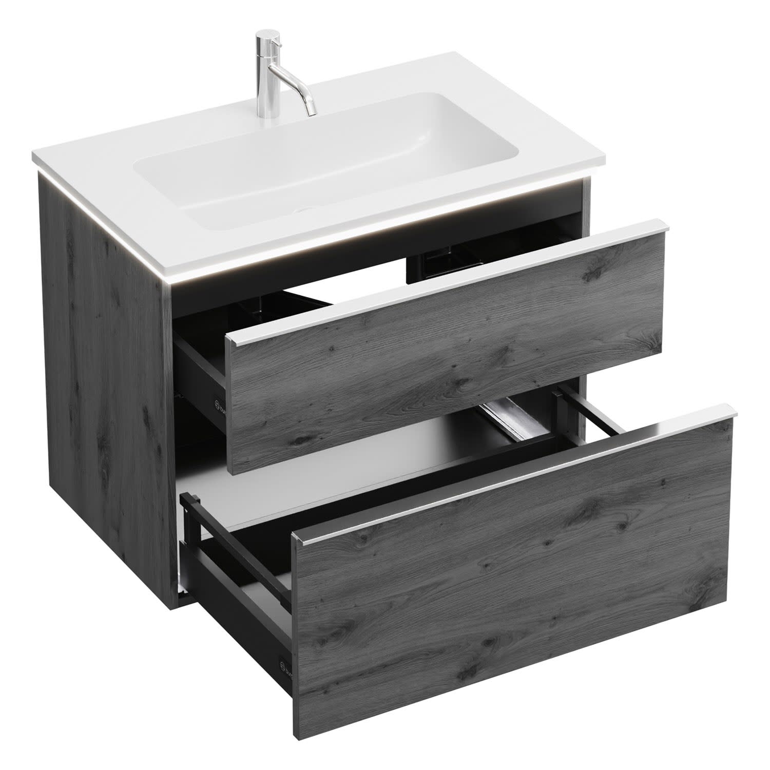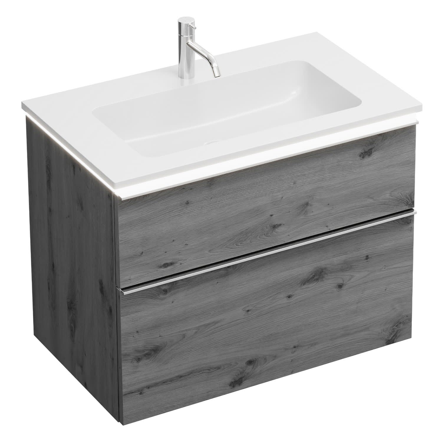 burgbad Eqio Waschtischkombination mit Mineralguss-Waschtisch und LED-Beleuchtung, 82 cm, mit Griffleiste G0251