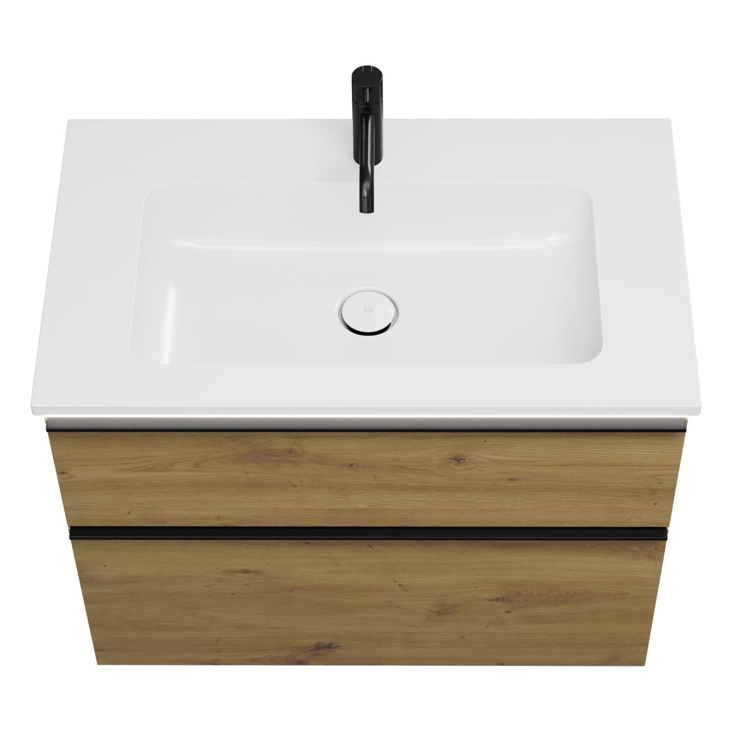 - 1 Schublade oben, 35 cm tief, mit Siphonausschnitt und Inneneinteilung