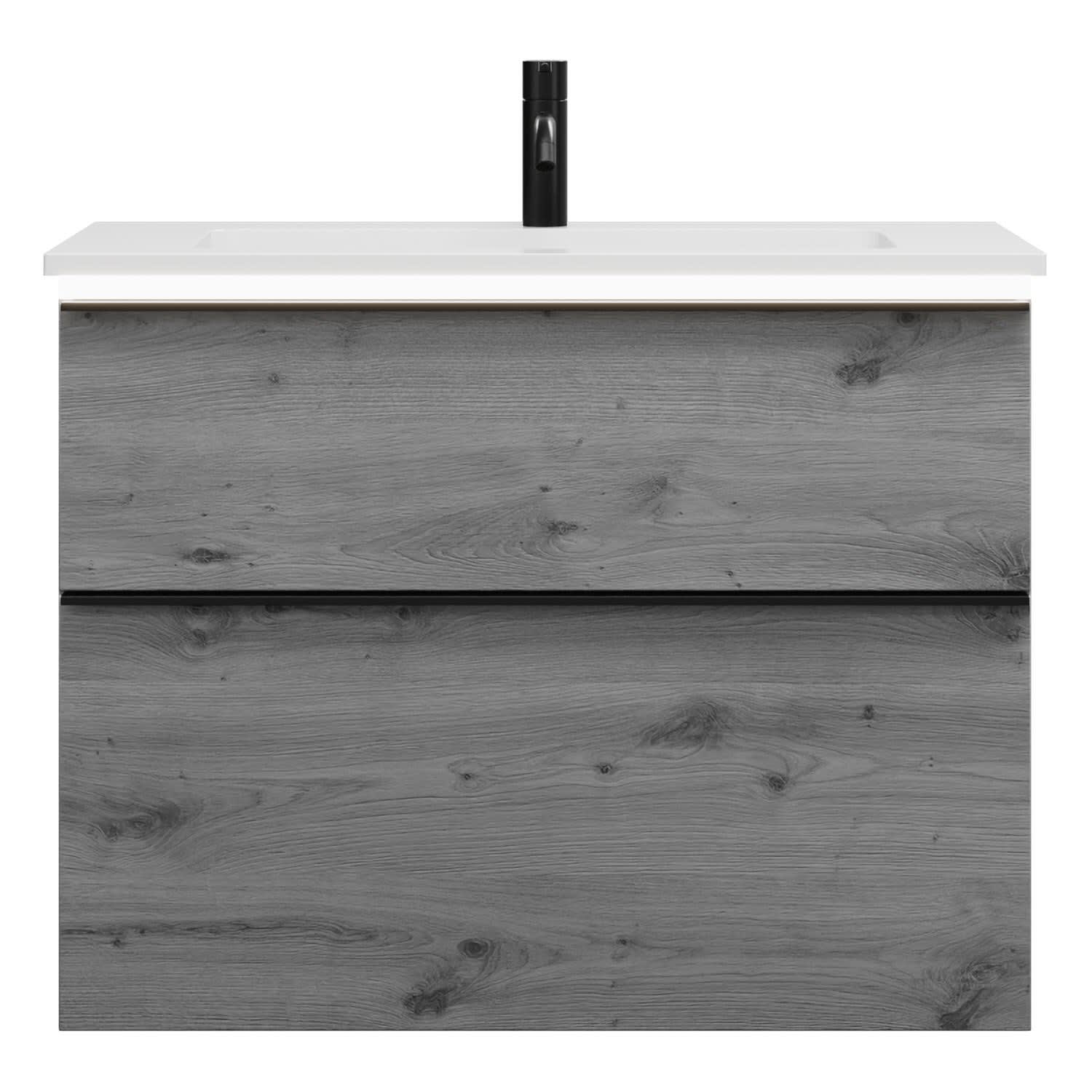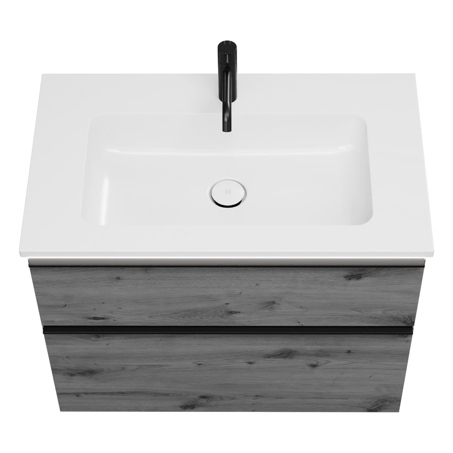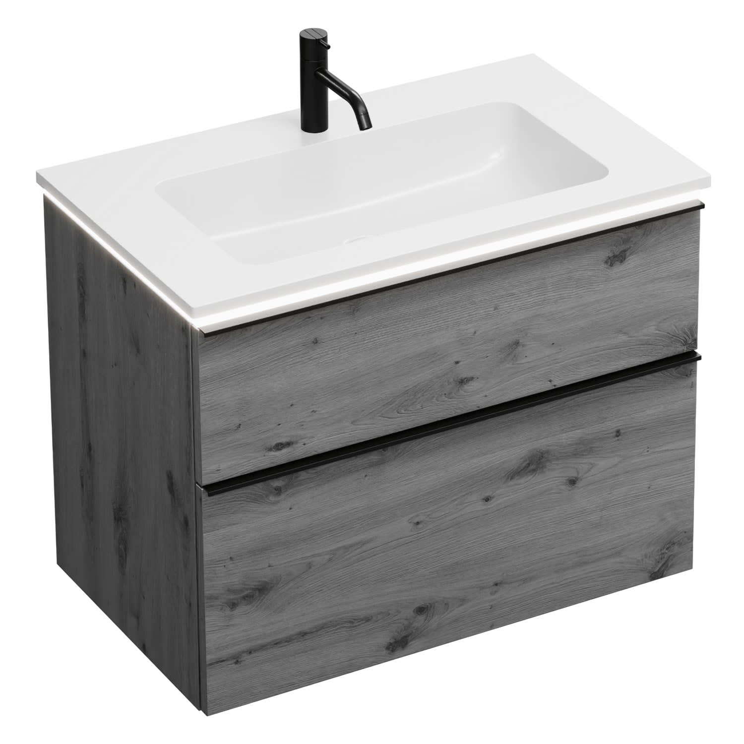 burgbad Eqio Waschtischkombination mit Mineralguss-Waschtisch und LED-Beleuchtung, 82 cm, mit Griffleiste G0252