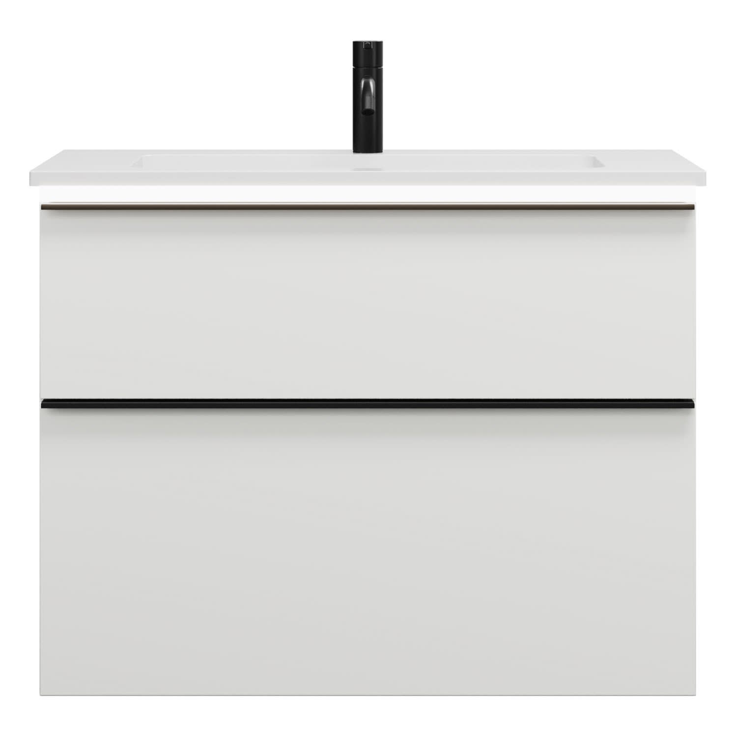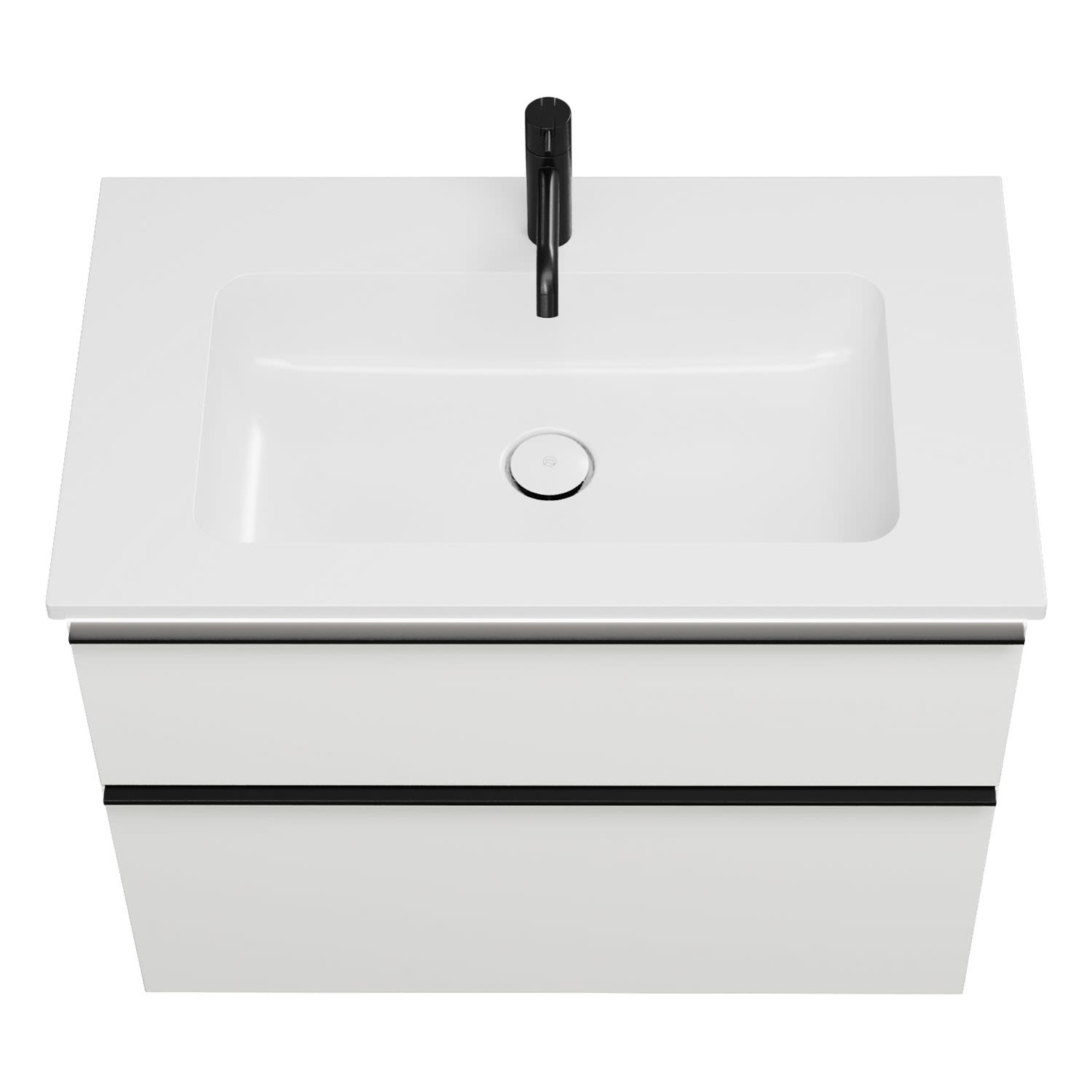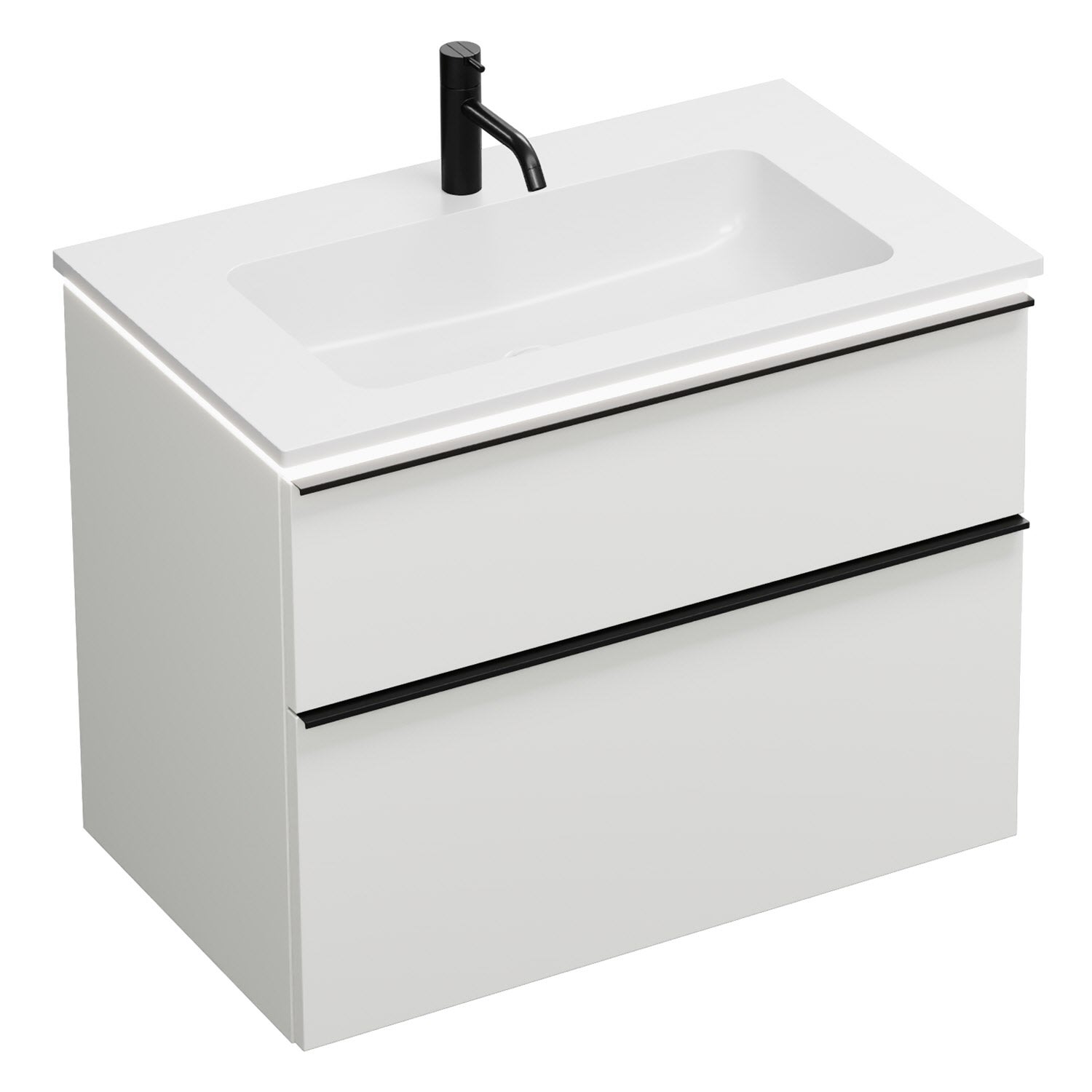 burgbad Eqio Waschtischkombination mit Mineralguss-Waschtisch und LED-Beleuchtung, 82 cm, mit Griffleiste G0252