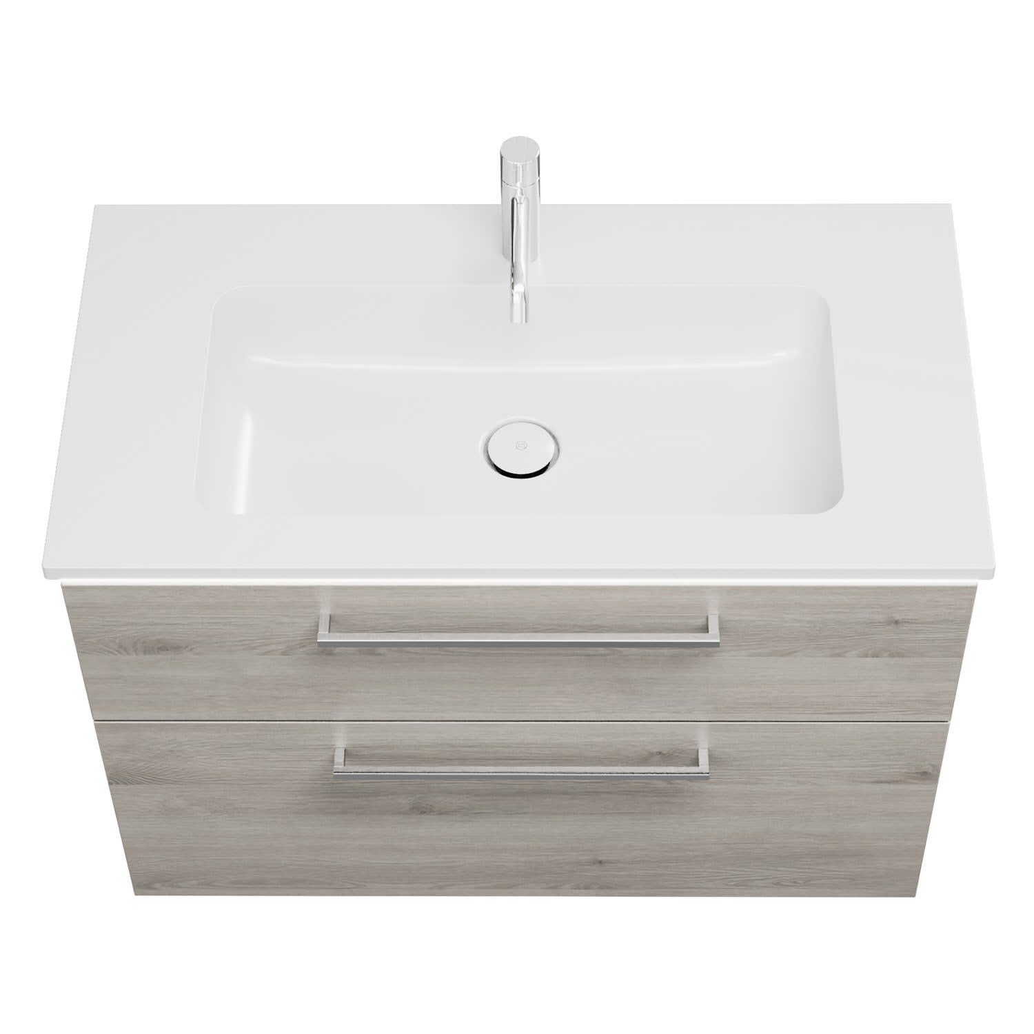 burgbad Eqio Waschtischkombination mit Mineralguss-Waschtisch und LED-Beleuchtung, 92 cm, mit Stangengriff P95