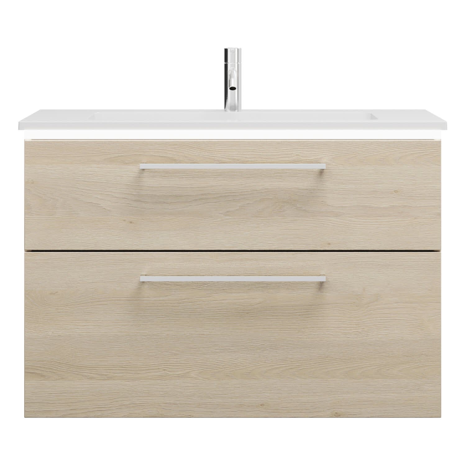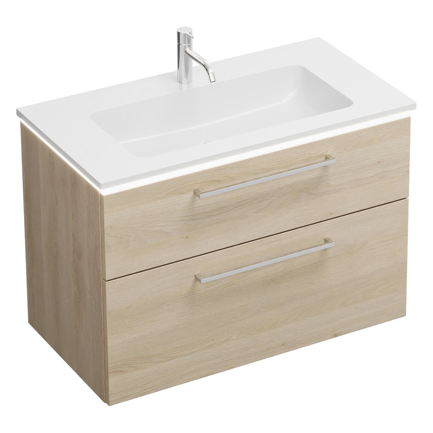 burgbad Eqio Waschtischkombination mit Mineralguss-Waschtisch und LED-Beleuchtung, 92 cm, mit Stangengriff P95
