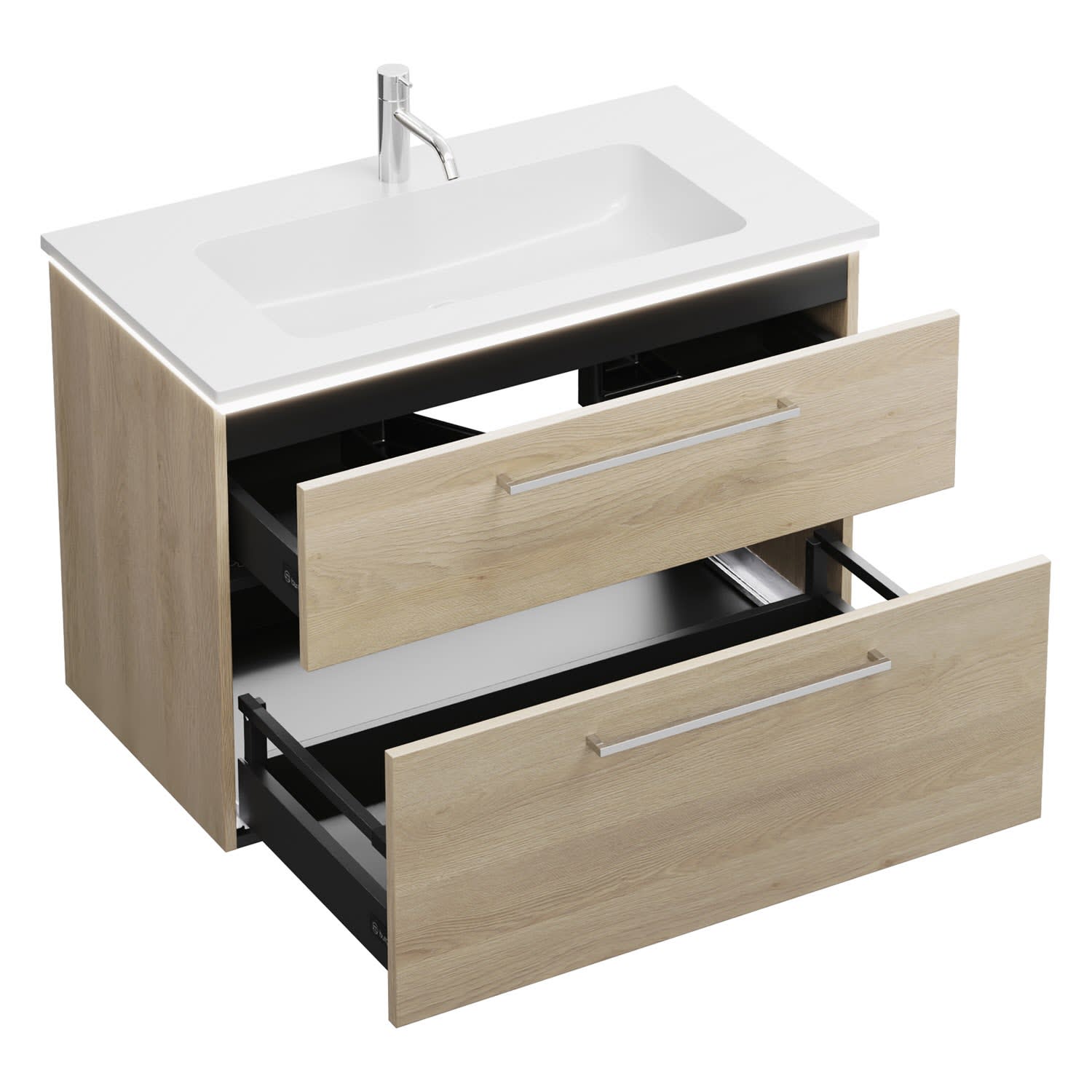 - 1 Schublade oben, 35 cm tief, mit Siphonausschnitt und Inneneinteilung