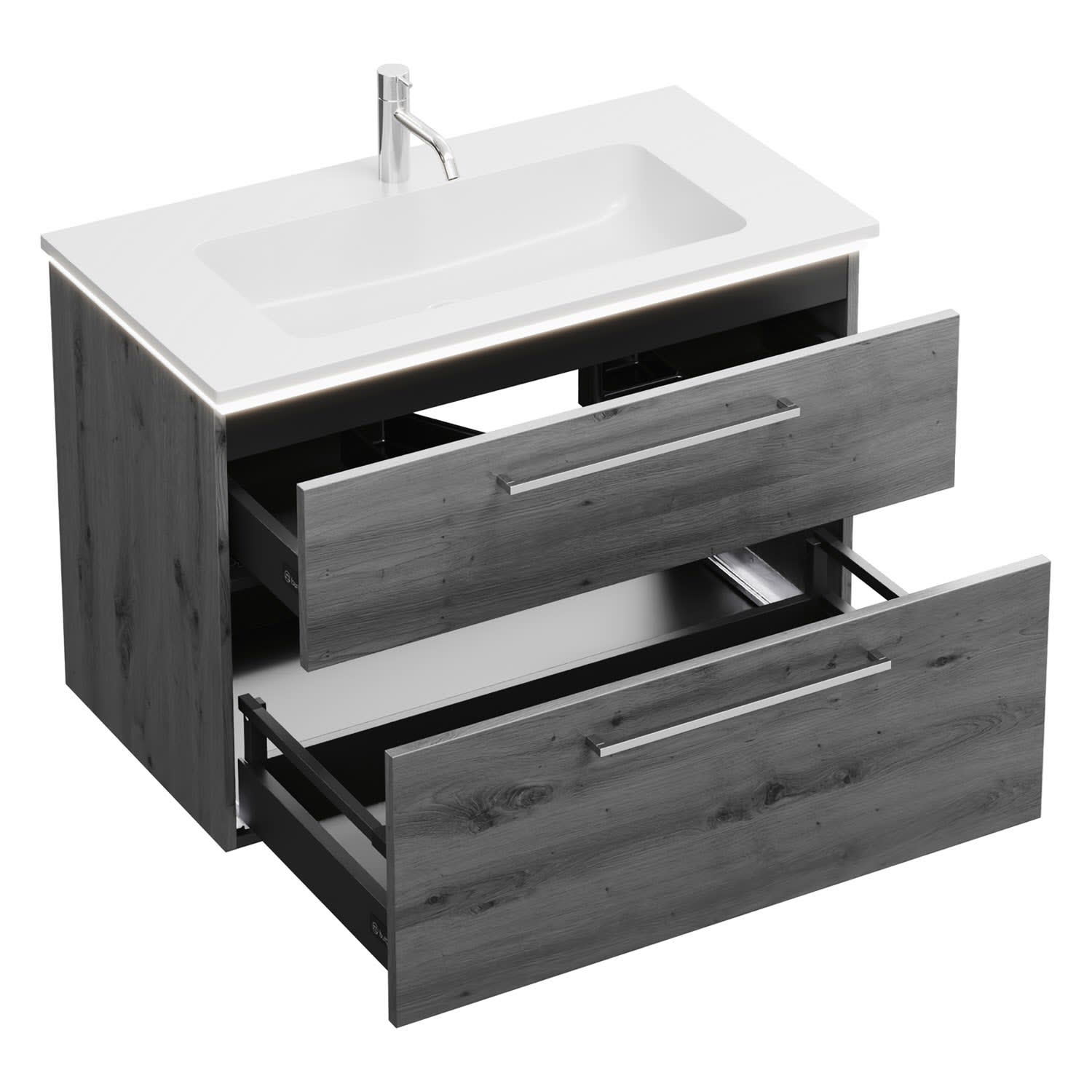 burgbad Eqio Waschtischkombination mit Mineralguss-Waschtisch und LED-Beleuchtung, 92 cm, mit Stangengriff P95