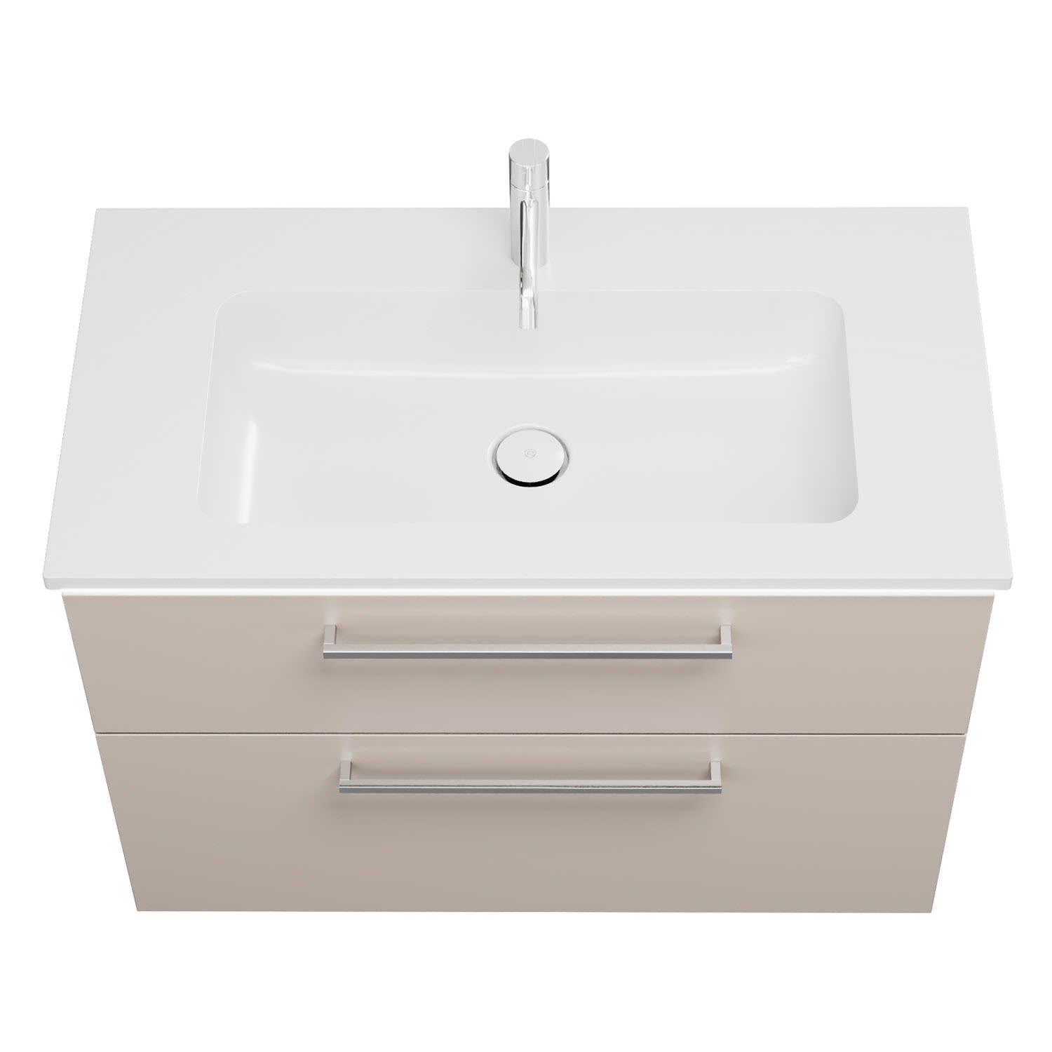 burgbad Eqio Waschtischkombination mit Mineralguss-Waschtisch und LED-Beleuchtung, 92 cm, mit Stangengriff P95