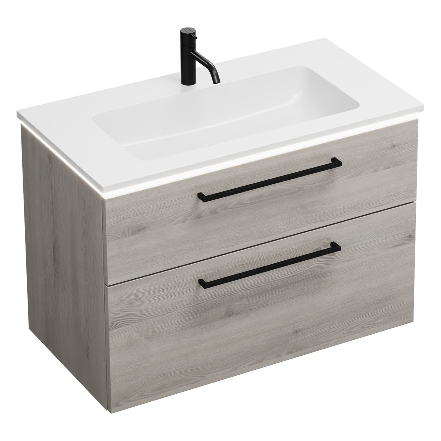 burgbad Eqio Waschtischkombination mit Mineralguss-Waschtisch und LED-Beleuchtung, 92 cm, mit Stangengriff G0234