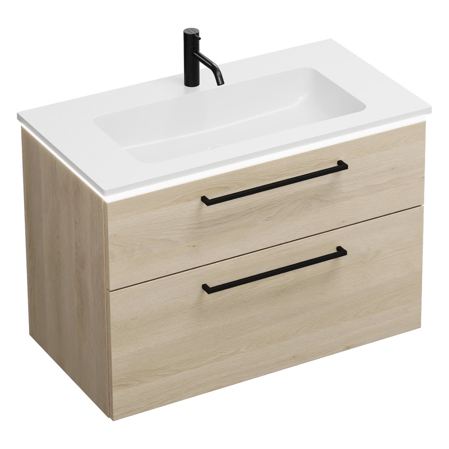 burgbad Eqio Waschtischkombination mit Mineralguss-Waschtisch und LED-Beleuchtung, 92 cm, mit Stangengriff G0234