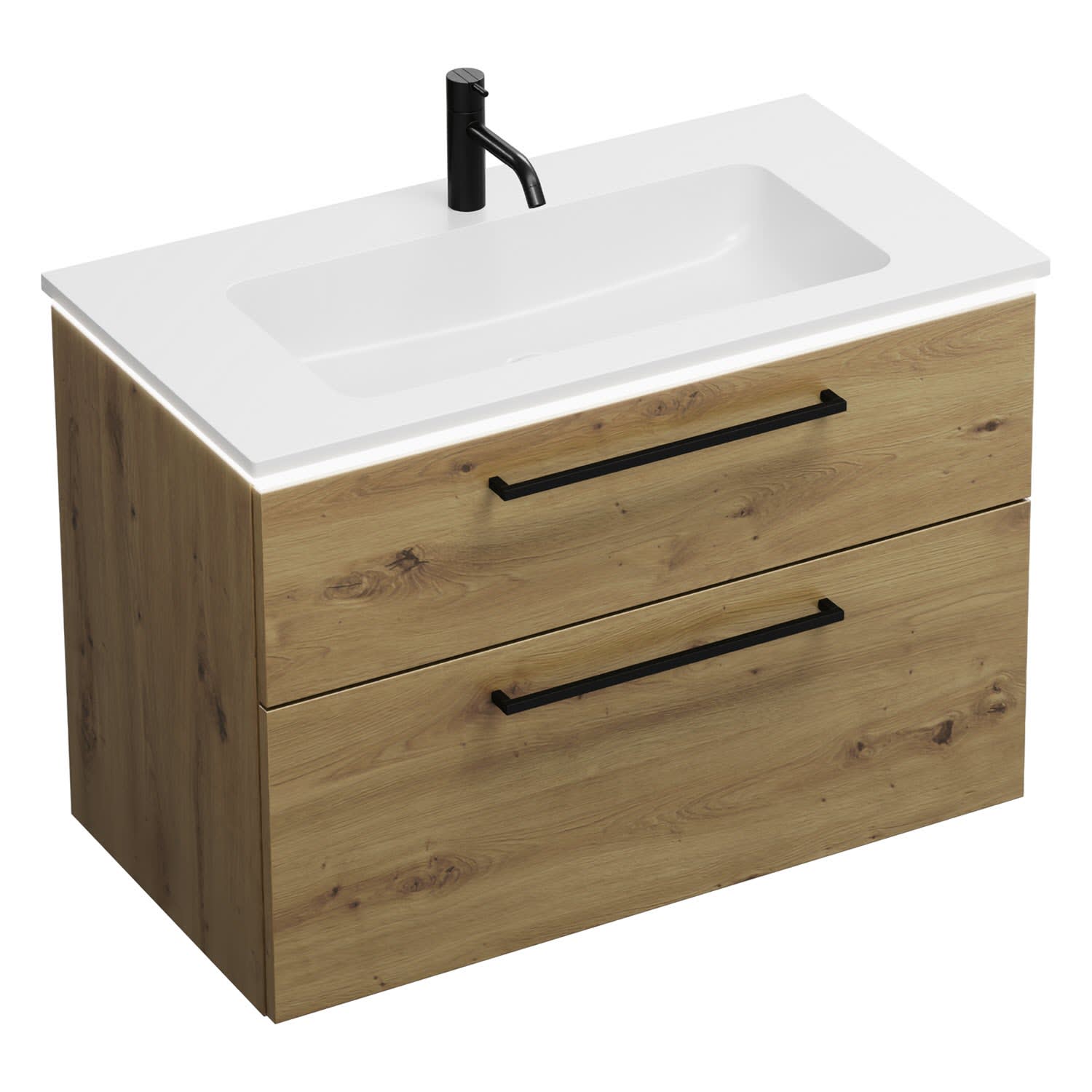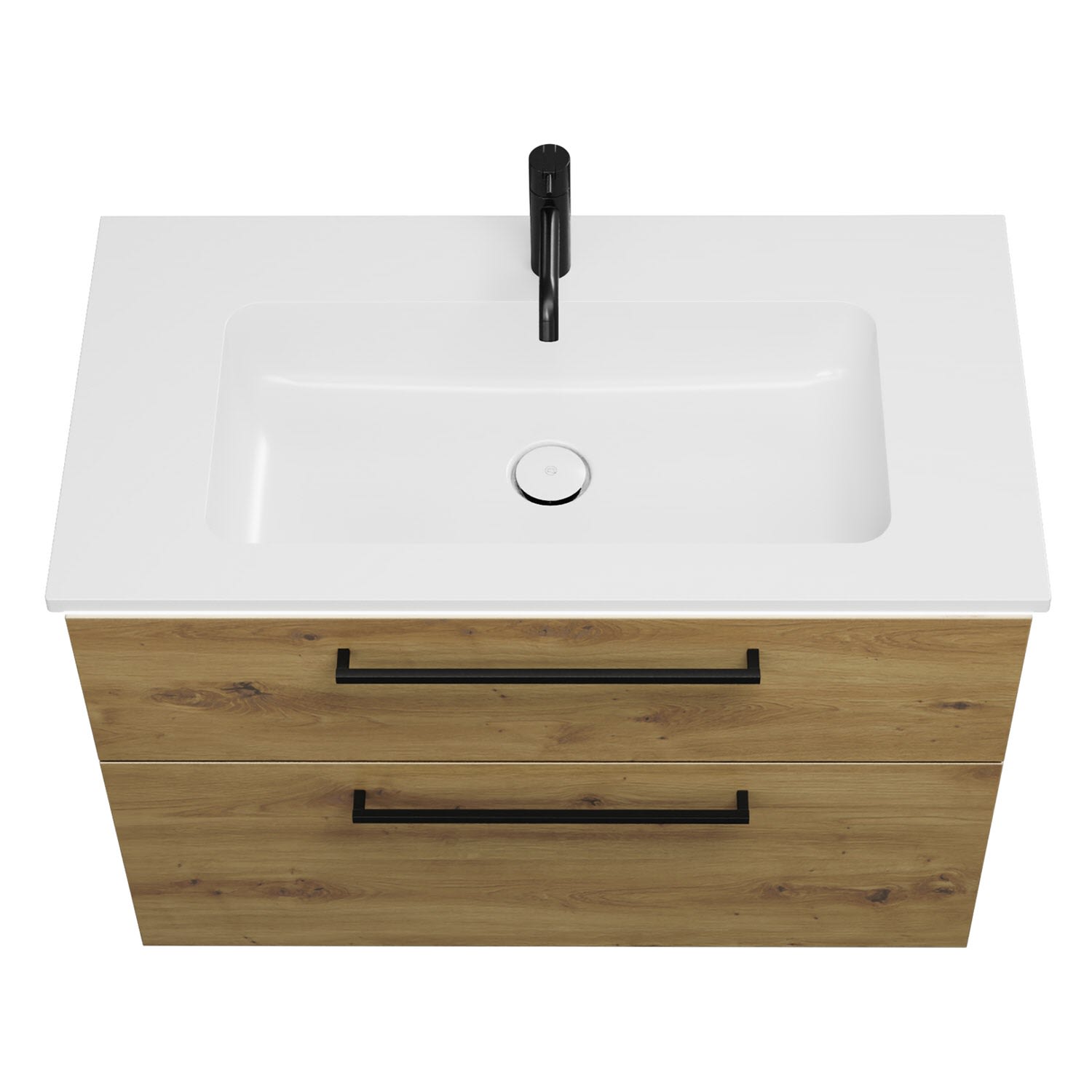 burgbad Eqio Waschtischkombination mit Mineralguss-Waschtisch und LED-Beleuchtung, 92 cm, mit Stangengriff G0234
