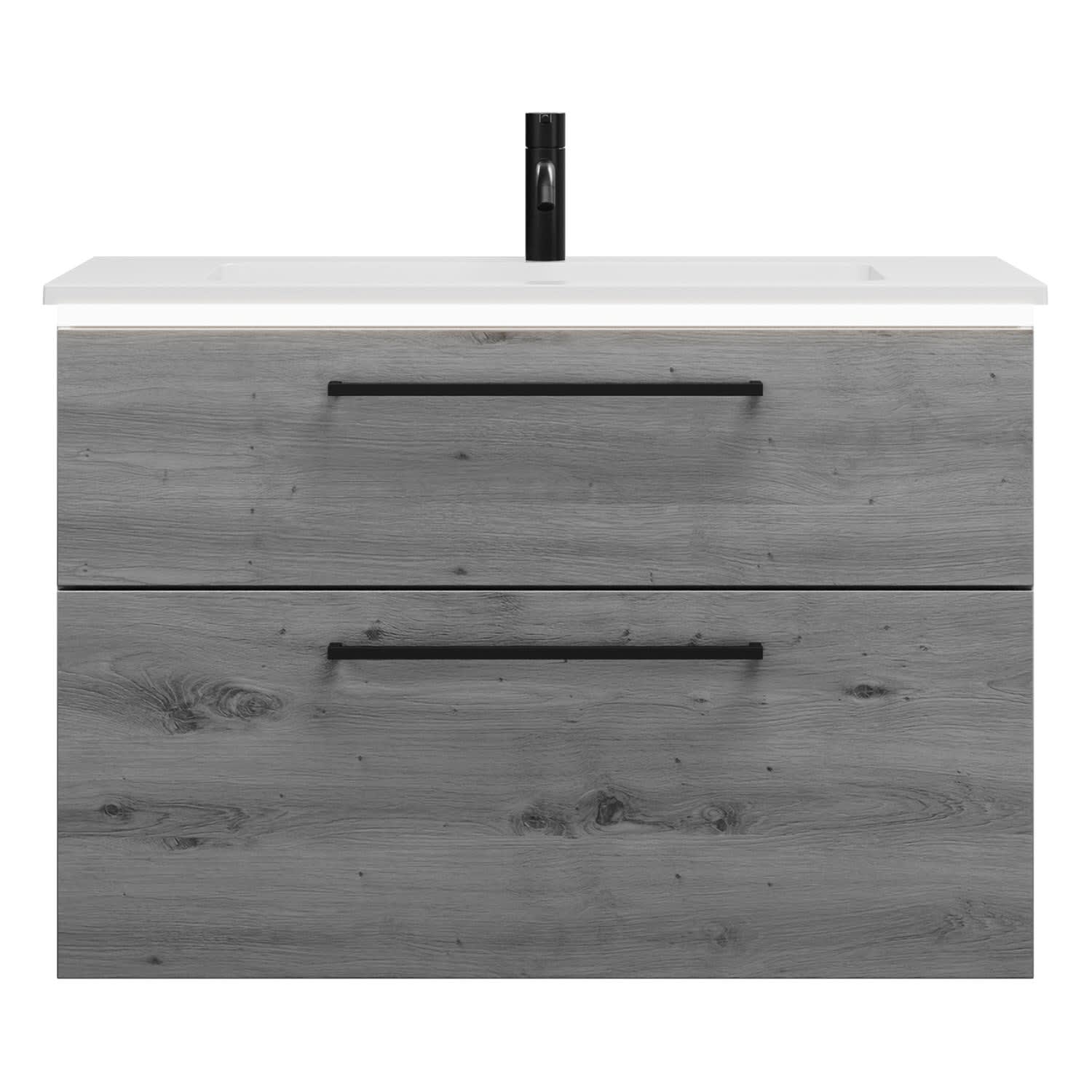 - 1 Schublade oben, 35 cm tief, mit Siphonausschnitt und Inneneinteilung