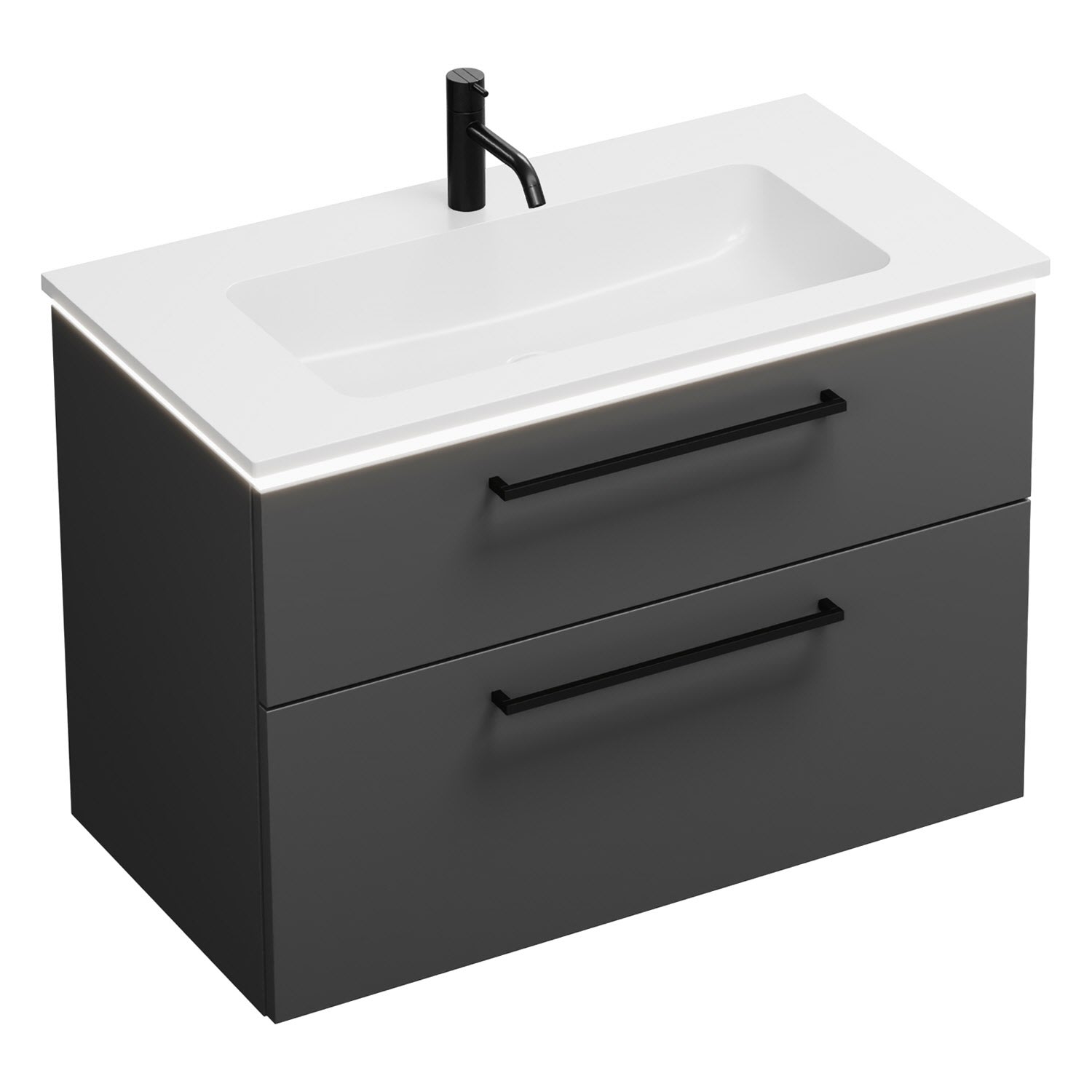 burgbad Eqio Waschtischkombination mit Mineralguss-Waschtisch und LED-Beleuchtung, 92 cm, mit Stangengriff G0234
