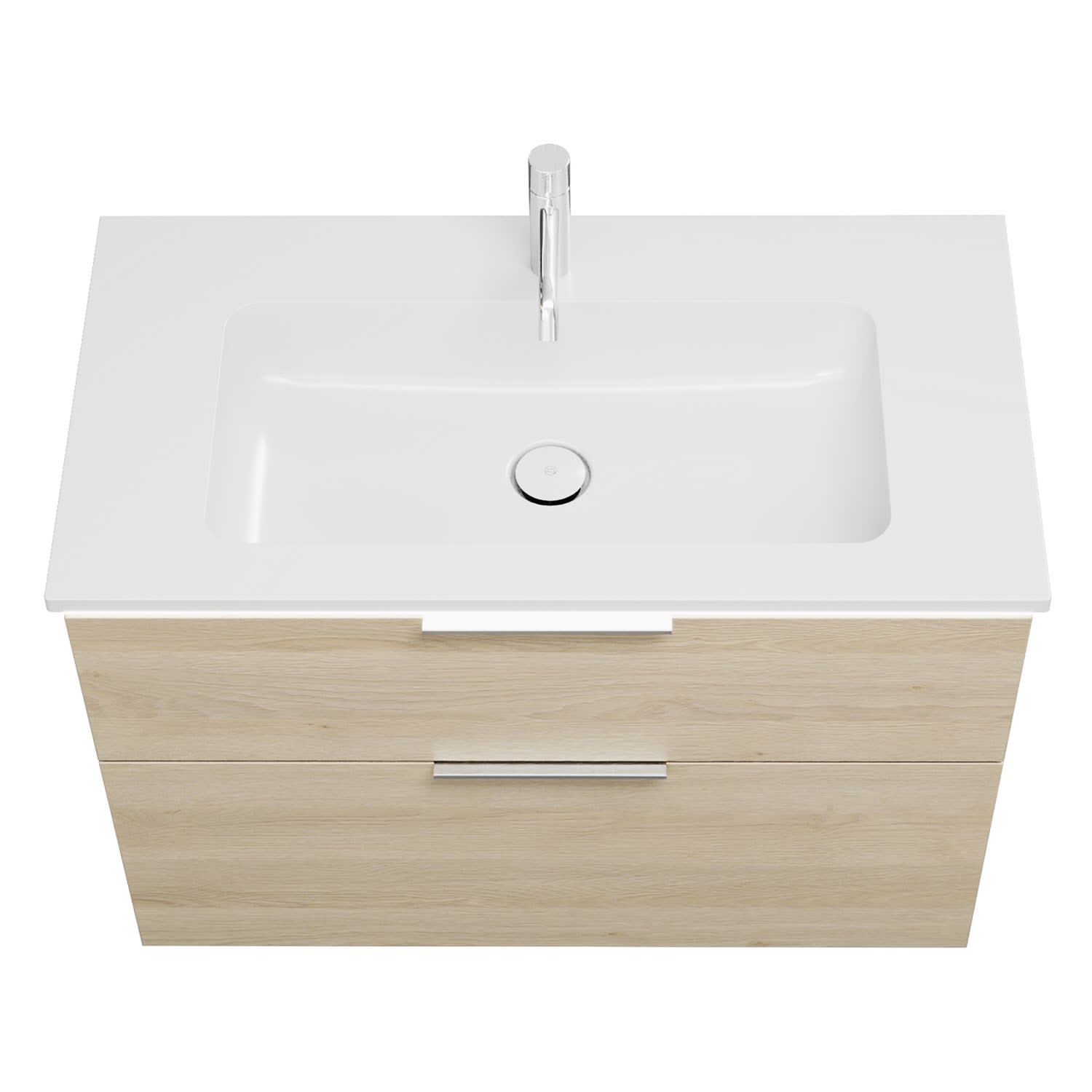 - 1 Schublade oben, 35 cm tief, mit Siphonausschnitt und Inneneinteilung