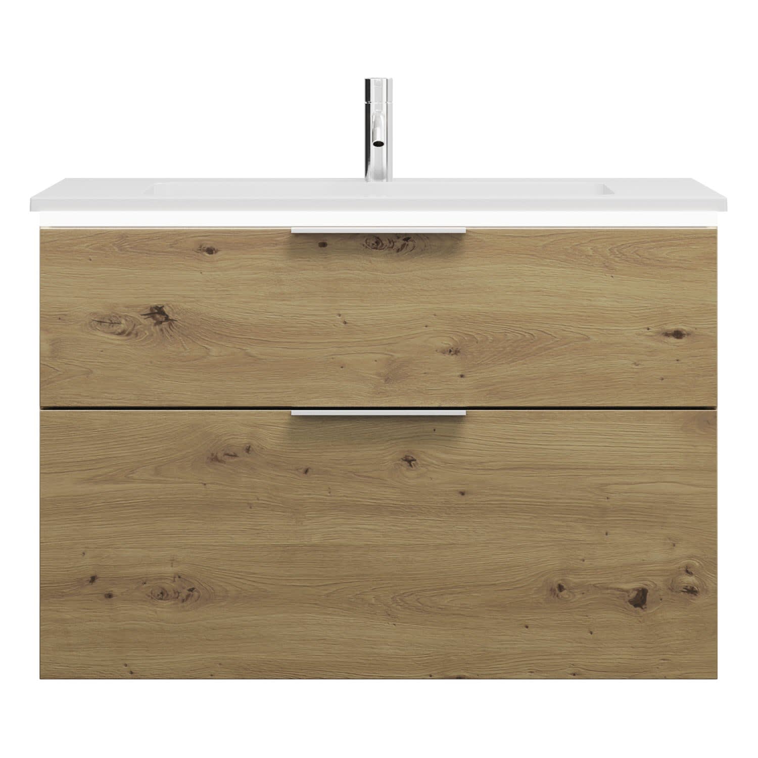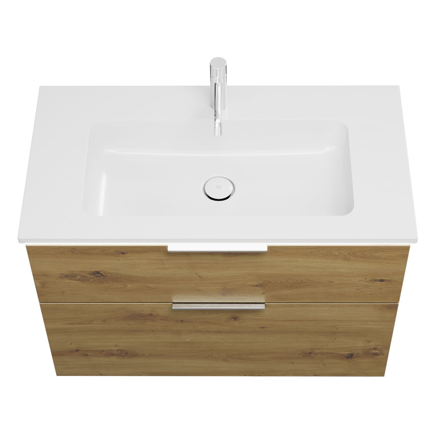 burgbad Eqio Waschtischkombination mit Mineralguss-Waschtisch und LED-Beleuchtung, 92 cm, mit Griff G0146