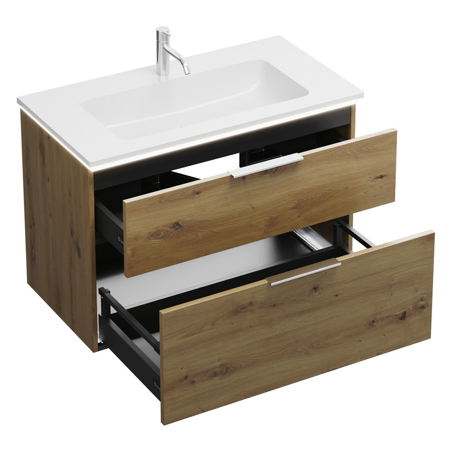 - 1 Schublade oben, 35 cm tief, mit Siphonausschnitt und Inneneinteilung