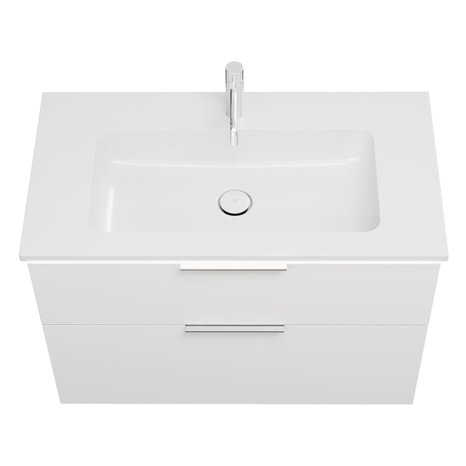 - 1 Schublade oben, 35 cm tief, mit Siphonausschnitt und Inneneinteilung