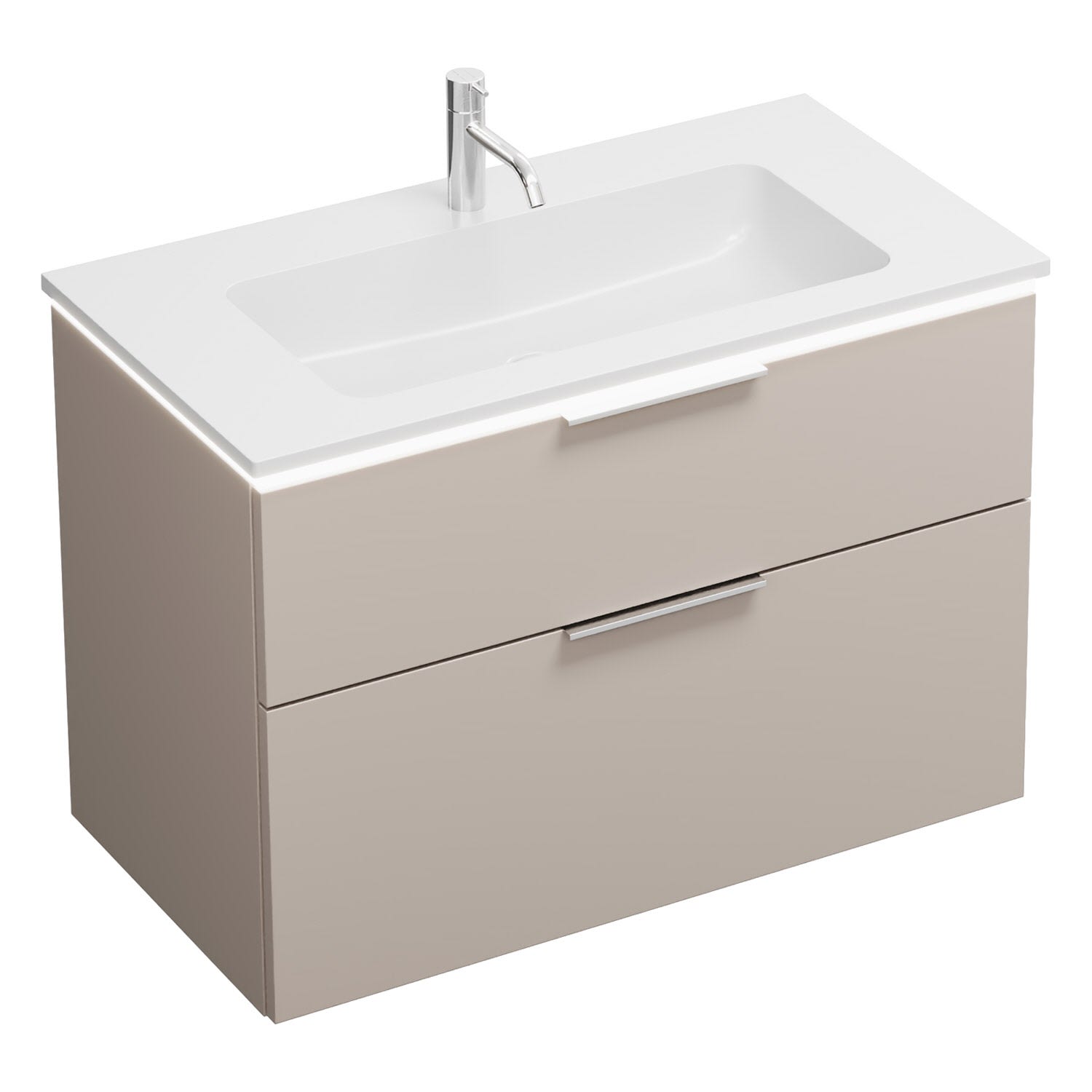 burgbad Eqio Waschtischkombination mit Mineralguss-Waschtisch und LED-Beleuchtung, 92 cm, mit Griff G0146