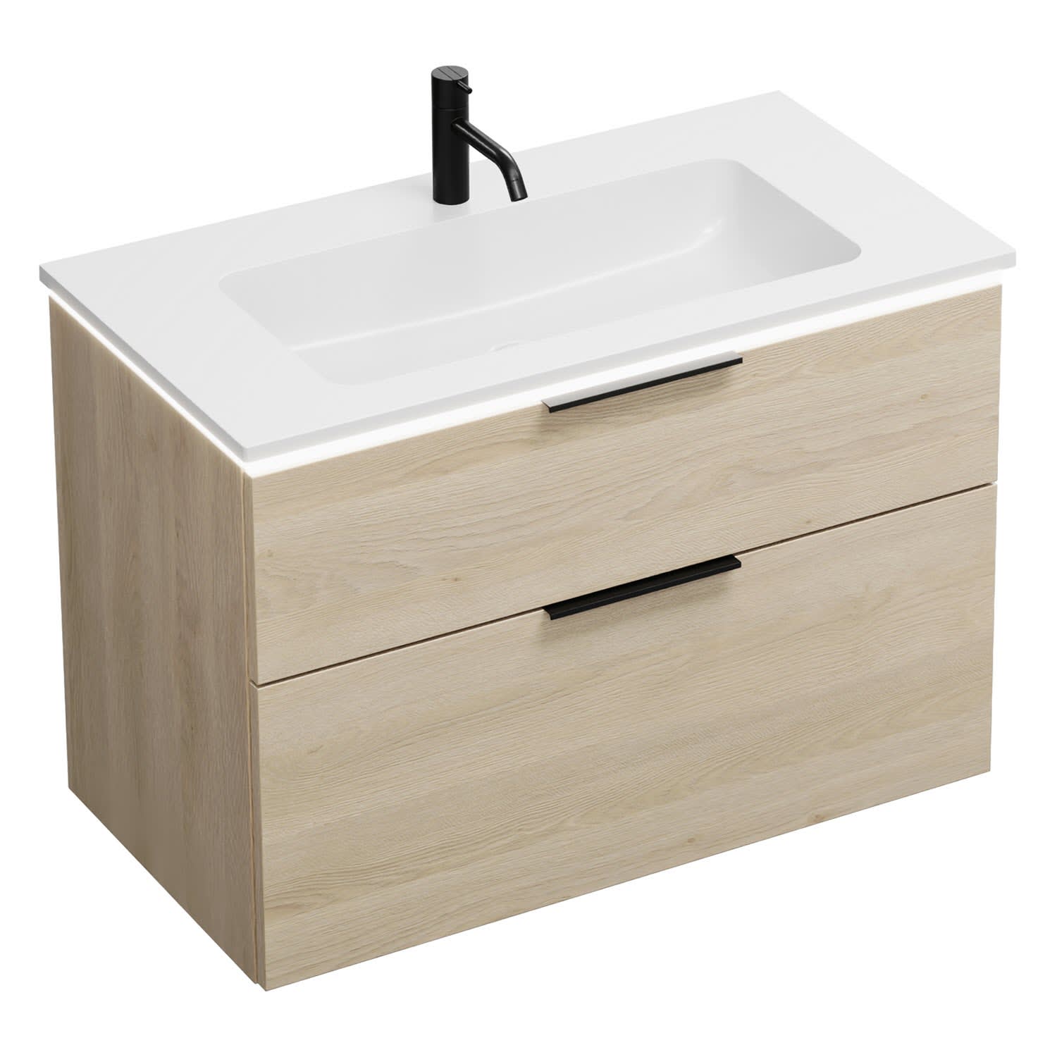 burgbad Eqio Waschtischkombination mit Mineralguss-Waschtisch und LED-Beleuchtung, 92 cm, mit Griff G0200