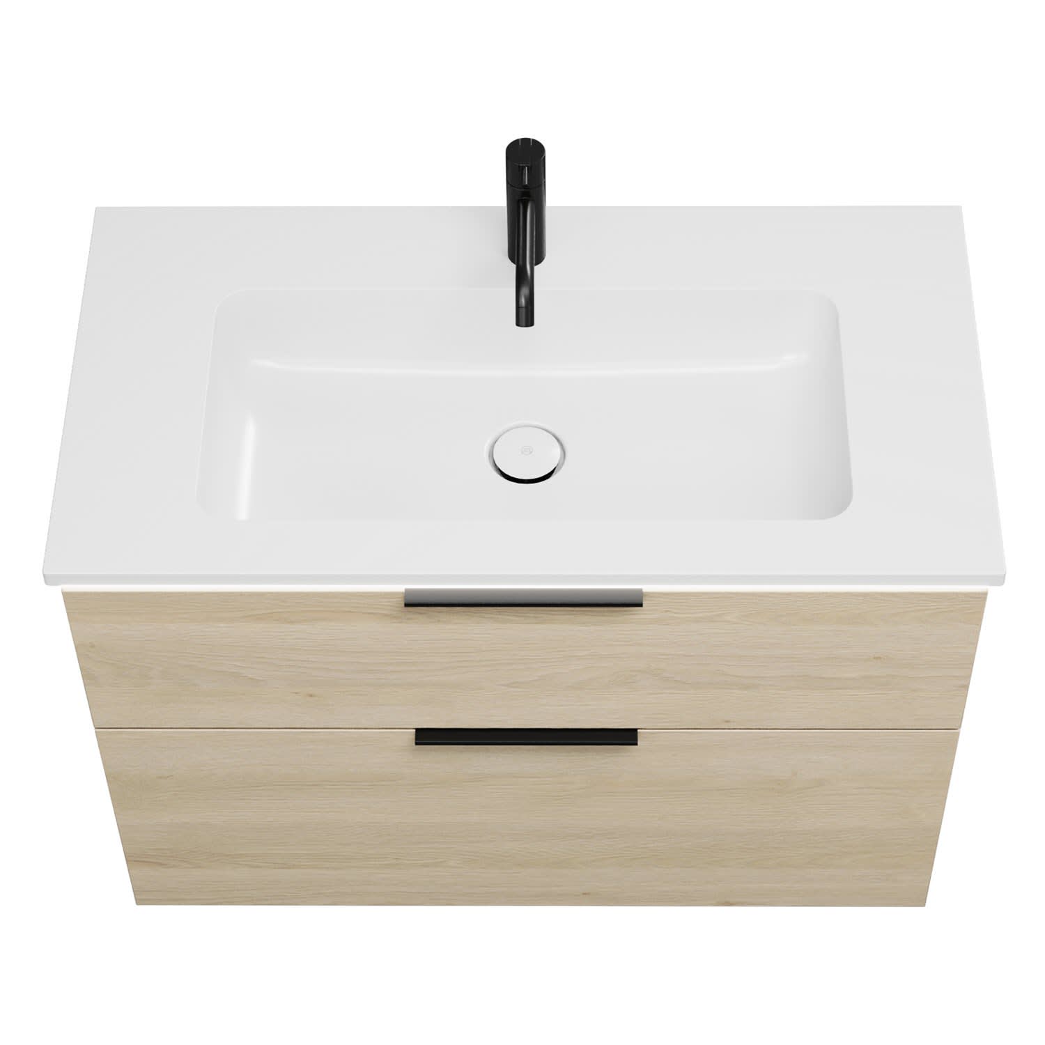 - 1 Schublade oben, 35 cm tief, mit Siphonausschnitt und Inneneinteilung