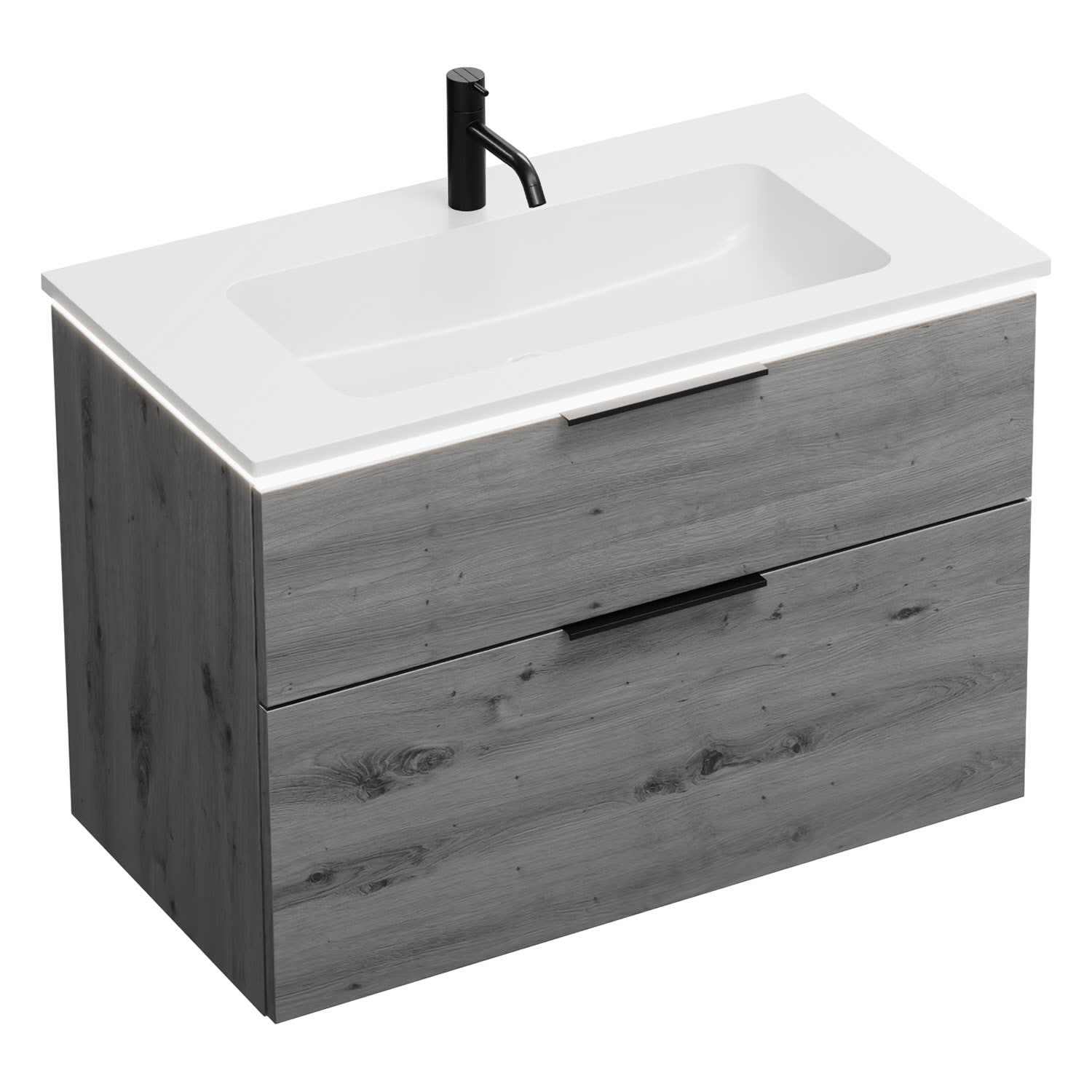 burgbad Eqio Waschtischkombination mit Mineralguss-Waschtisch und LED-Beleuchtung, 92 cm, mit Griff G0200