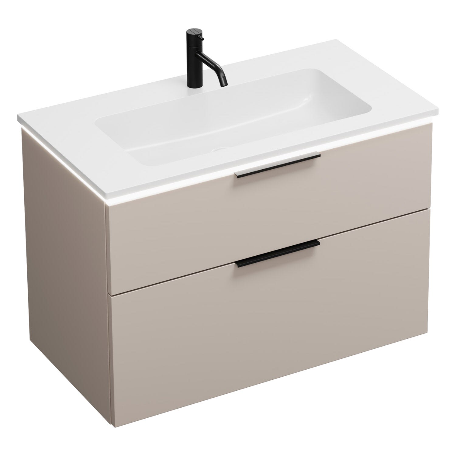 burgbad Eqio Waschtischkombination mit Mineralguss-Waschtisch und LED-Beleuchtung, 92 cm, mit Griff G0200