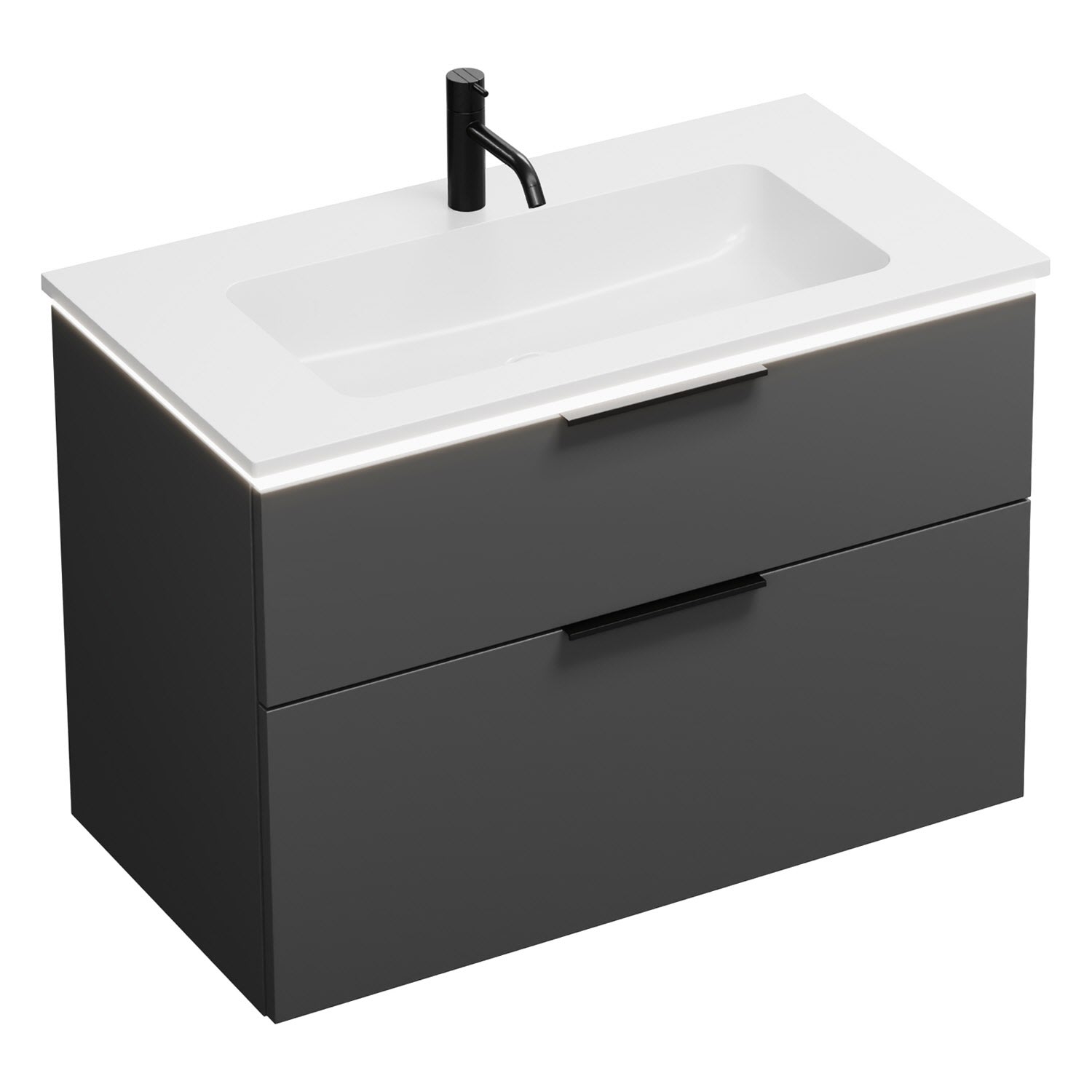 burgbad Eqio Waschtischkombination mit Mineralguss-Waschtisch und LED-Beleuchtung, 92 cm, mit Griff G0200