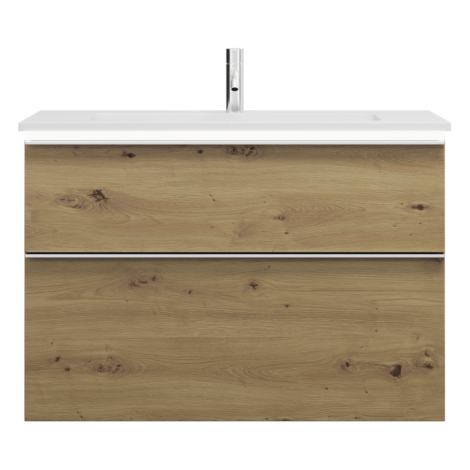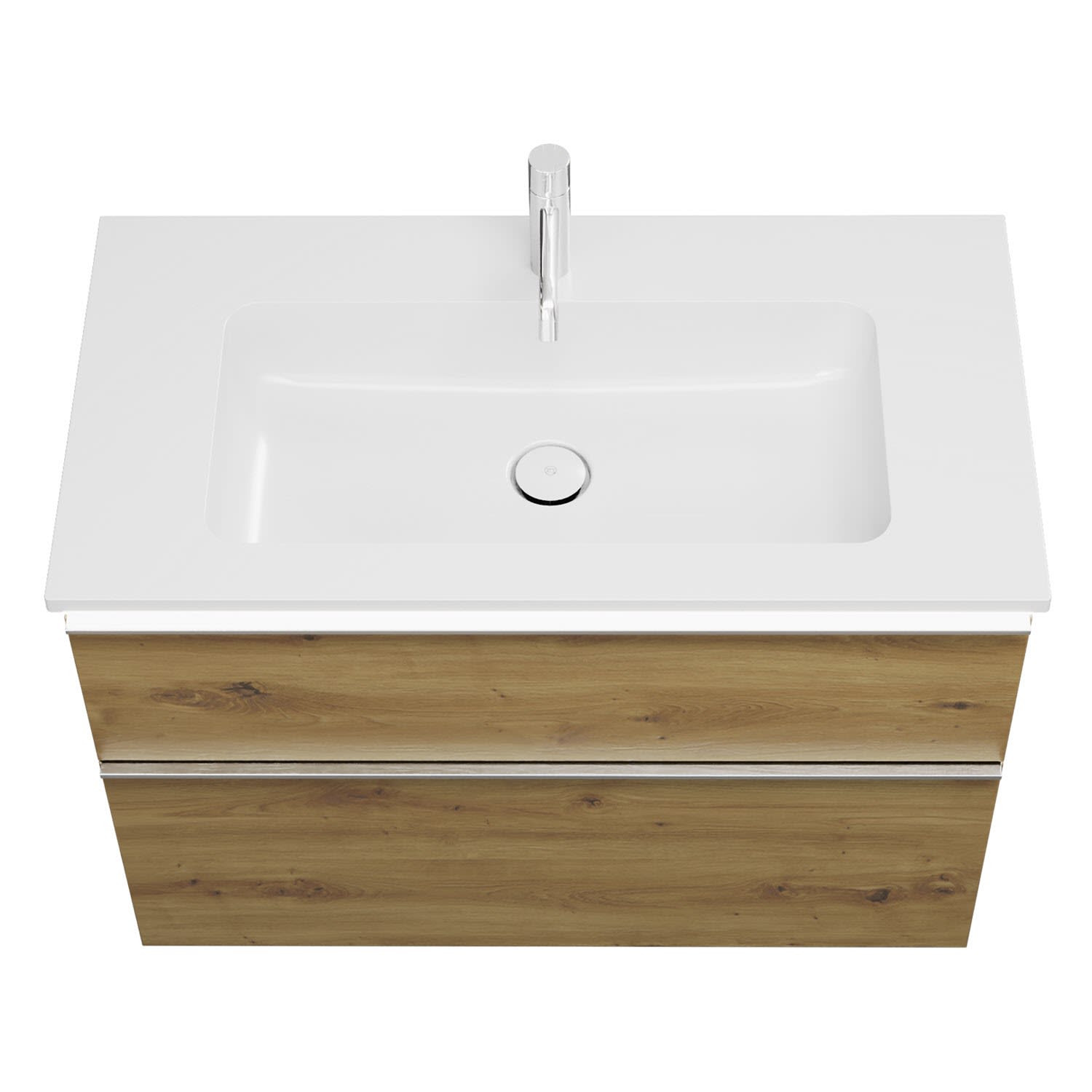burgbad Eqio Waschtischkombination mit Mineralguss-Waschtisch und LED-Beleuchtung, 92 cm, mit Griffleiste G0251