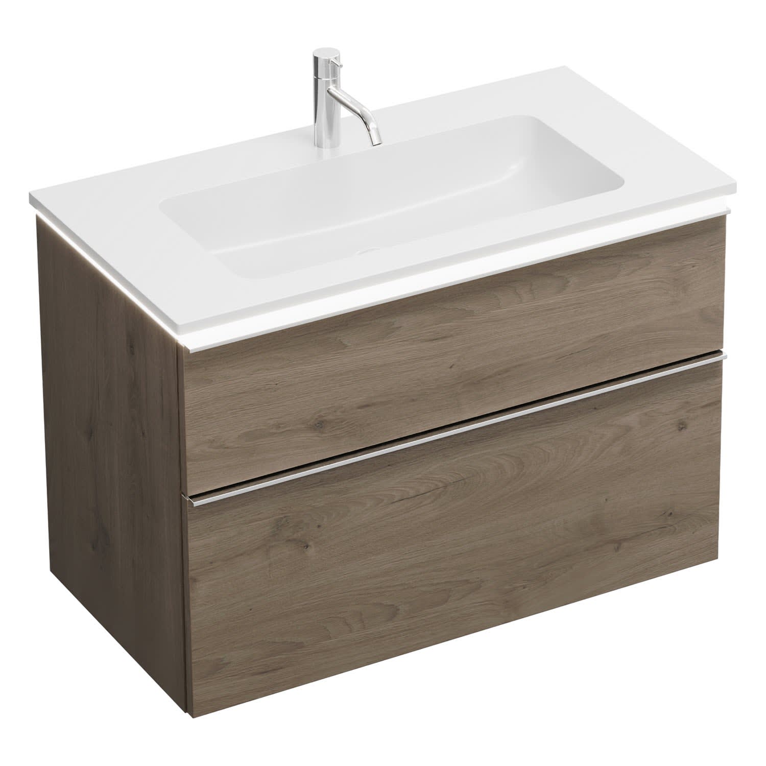 burgbad Eqio Waschtischkombination mit Mineralguss-Waschtisch und LED-Beleuchtung, 92 cm, mit Griffleiste G0251