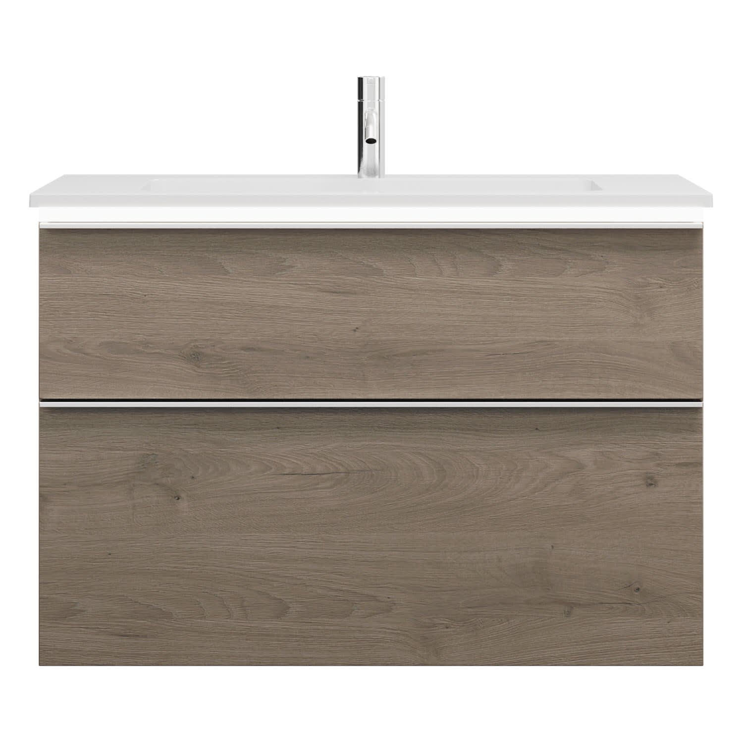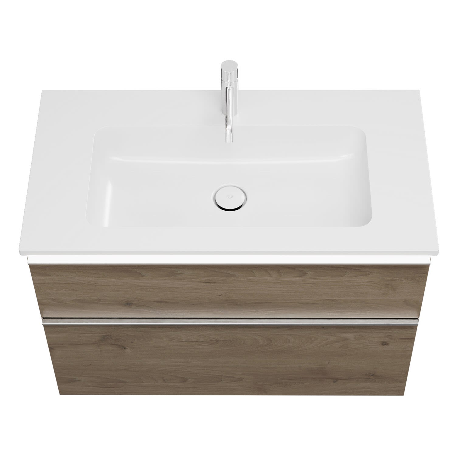 - 1 Schublade oben, 35 cm tief, mit Siphonausschnitt und Inneneinteilung
