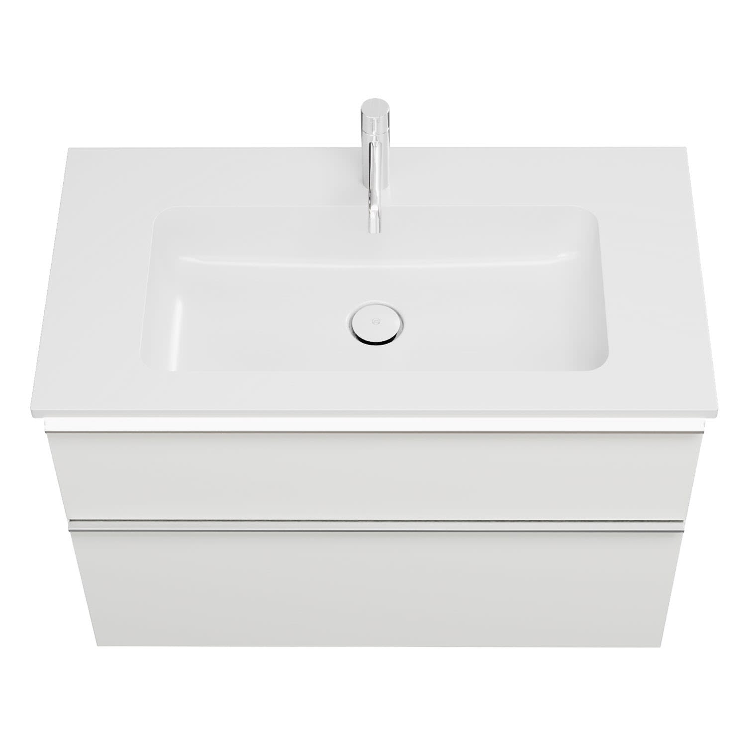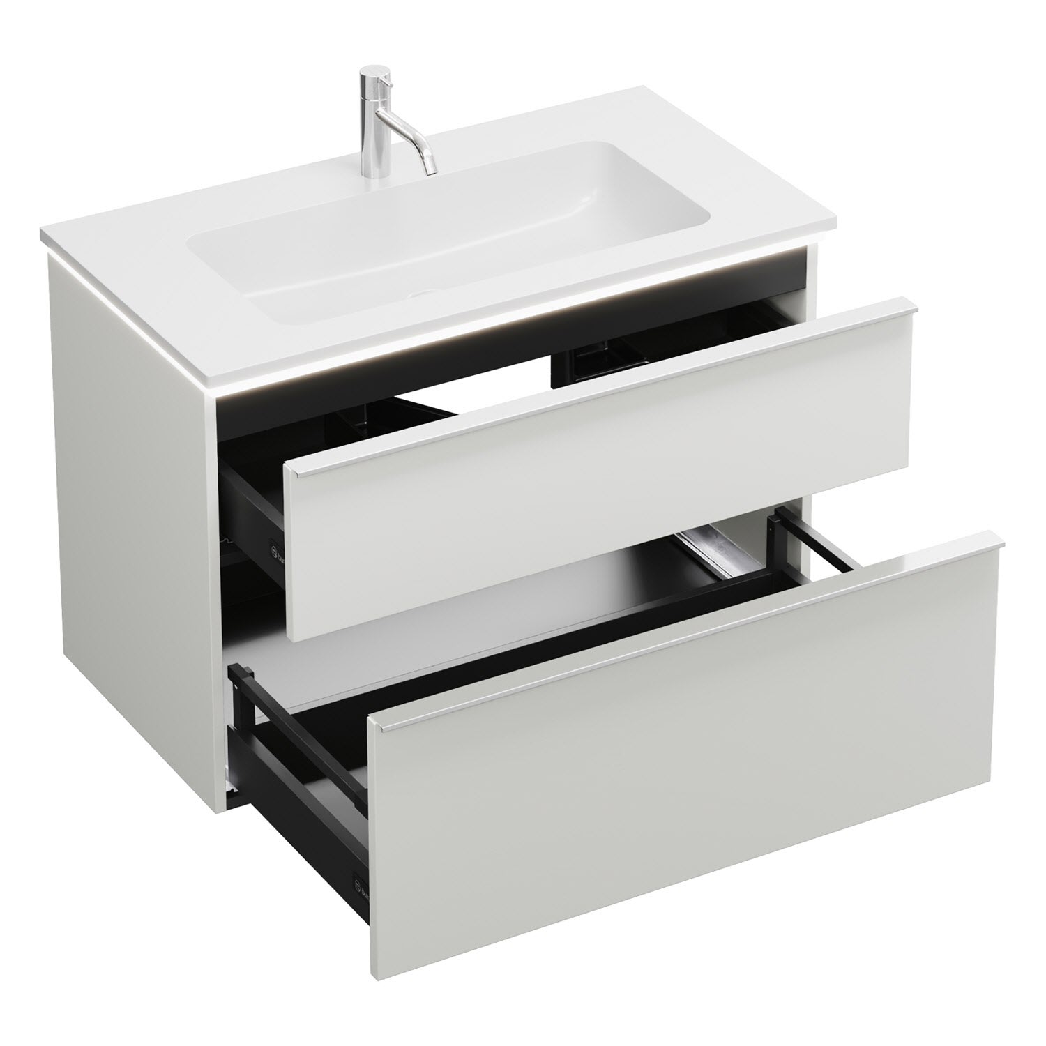 burgbad Eqio Waschtischkombination mit Mineralguss-Waschtisch und LED-Beleuchtung, 92 cm, mit Griffleiste G0251