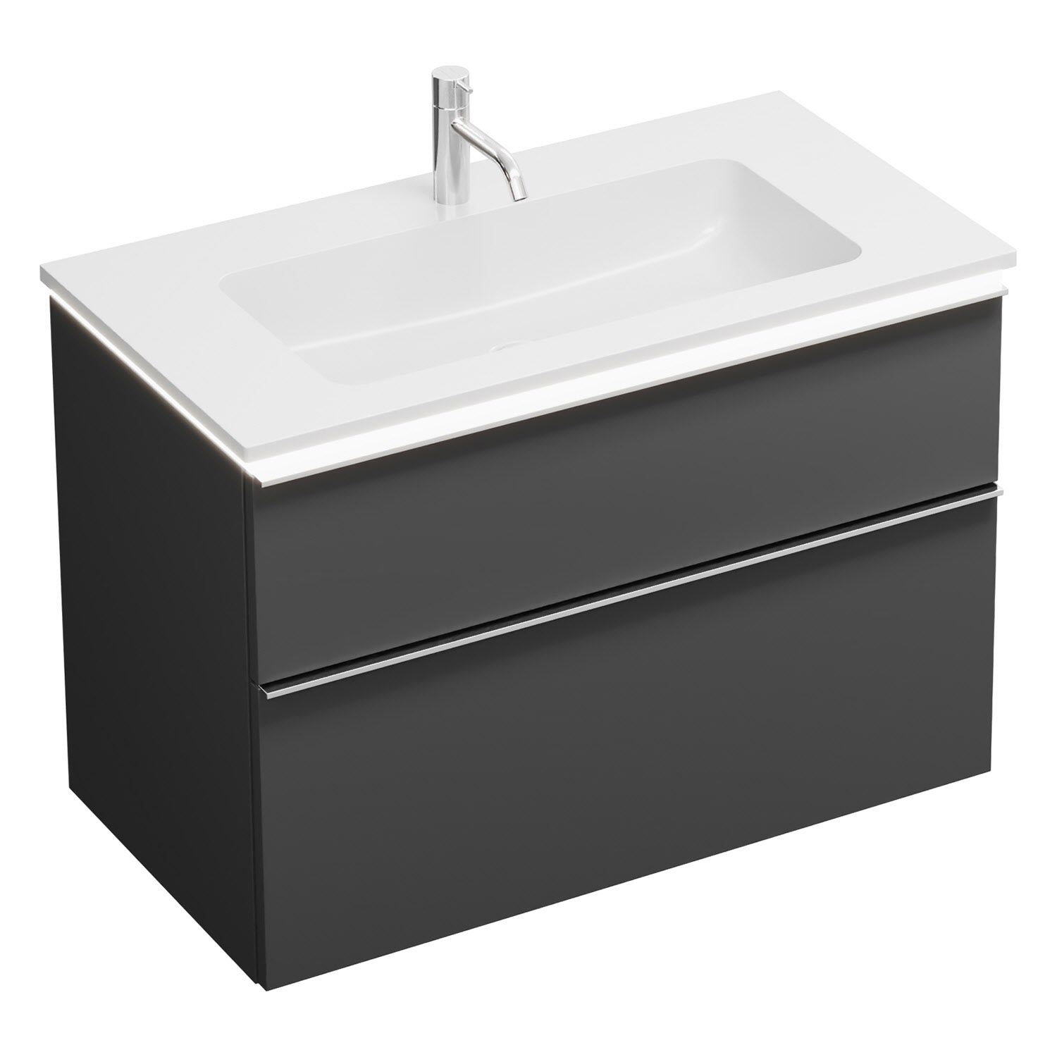 burgbad Eqio Waschtischkombination mit Mineralguss-Waschtisch und LED-Beleuchtung, 92 cm, mit Griffleiste G0251