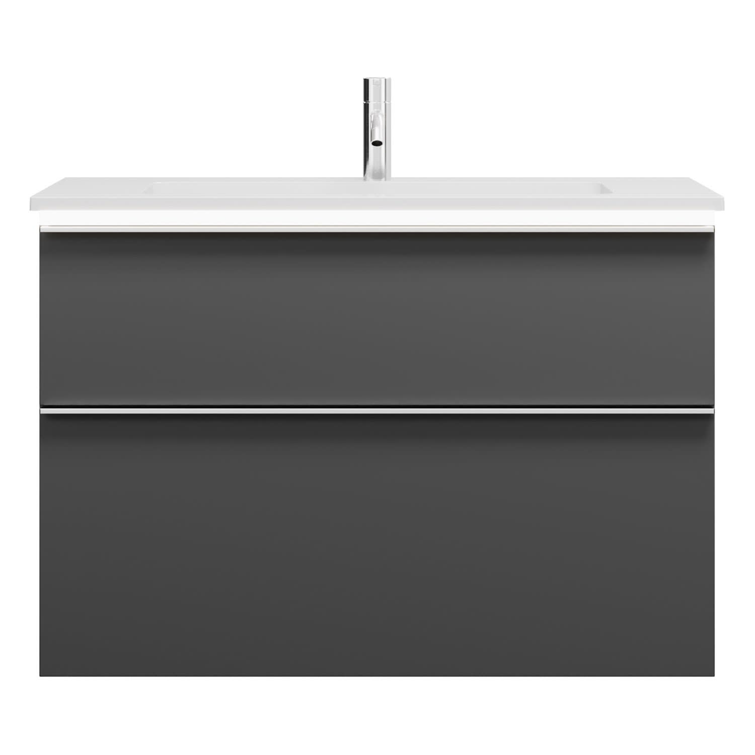 - 1 Schublade oben, 35 cm tief, mit Siphonausschnitt und Inneneinteilung